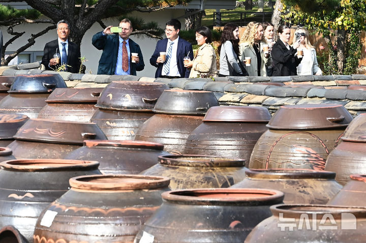 김종택기자 = 콩을 발효해 된장과 간장을 만드는 한국의 장(醬) 문화가 유네스코 인류무형문화유산 '등재 권고' 판정이 내려진 5일 경기도 안성시 일죽면 서일농원을 찾은 외국인들이 장독대를 살펴보고 있다.