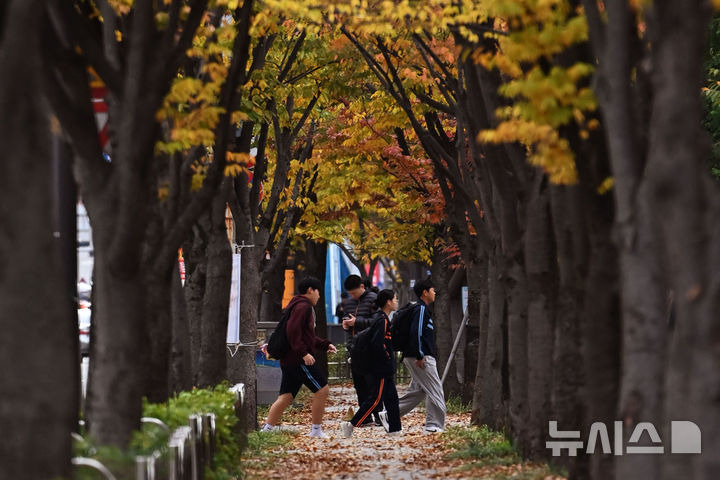 이영주 기자 = 광주·전남지역 최저기온이 10도 안팎에 머무르며 올가을 최저기온을 기록한 5일 오전 광주 서구 치평동에서 학생들이 등교하고 있다.