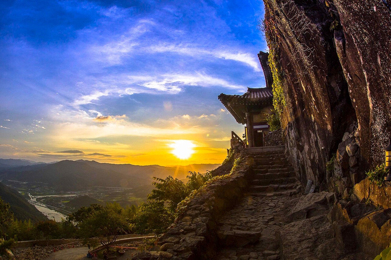 구례의 사성암은 오산 정상의 기암절벽에 자리한 아름다운 한국 사찰로, 원효, 의상, 도선, 진각 선사 등 네 명의 고승이 이곳에서 수행했다고 전해집니다. 특히 다 깎아지는 절벽위에 세워진 사찰이 탄성을 자아냅니다. 20m 높이의 암벽에 지어진 약사전 내부에는 마애여래입상이 새겨져 있는데 그 모습이 상당히 진귀한데요.