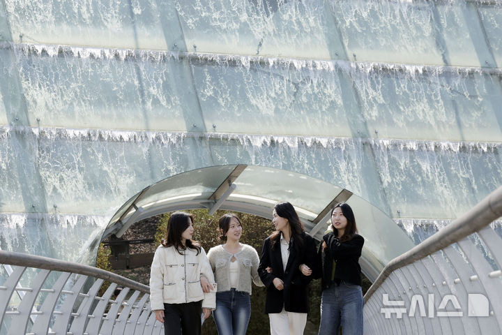 최동준 기자 = 서초구가 3일 서울 서초 아쿠아아트 육교 워터스크린을 가동하고 있다.