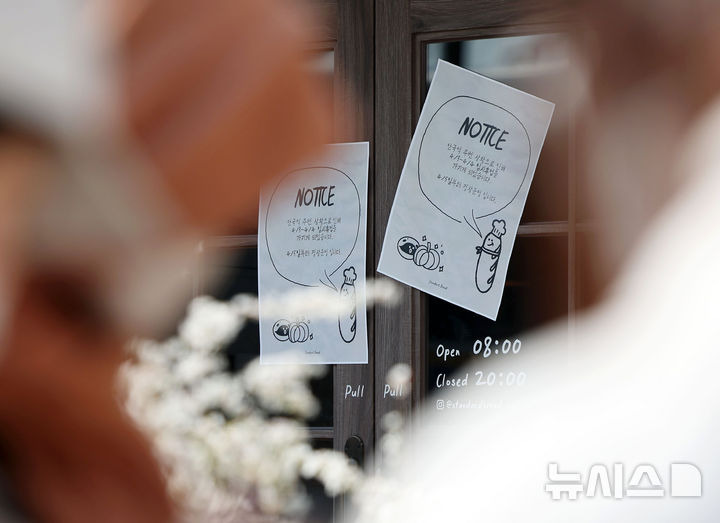 홍효식 기자 = 윤석열 대통령 탄핵 심판 선고를 하루 앞둔 3일 서울 종로구 헌법재판소 인근 베이커리 카페 출입문에 임시 휴업 안내문이 부착되어 있다.