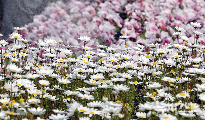 하경민 기자 = 24일 부산 부산진구 백양산 양묘장에서 관계자들이 봄초화를 가꾸고 있다.