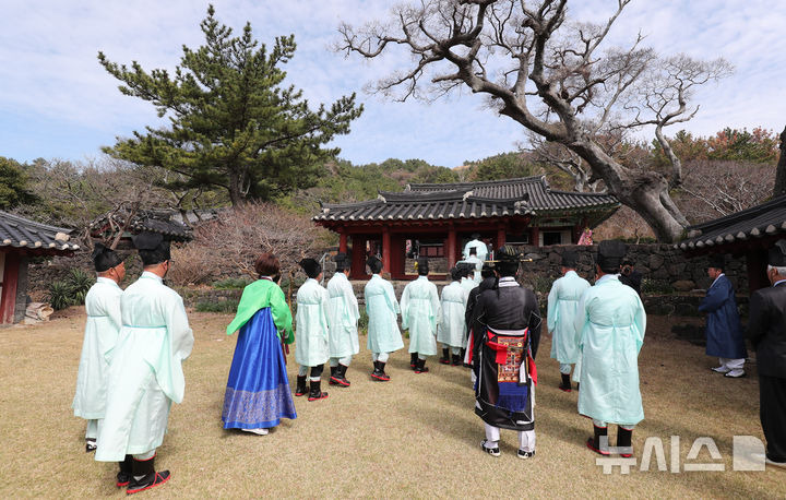 우장호 기자 = 24일 오전 제주 서귀포시 대정읍 대정향교에서 공자를 비롯한 성현들의 학덕을 기리는 춘기 석전대제가 봉행되고 있다.