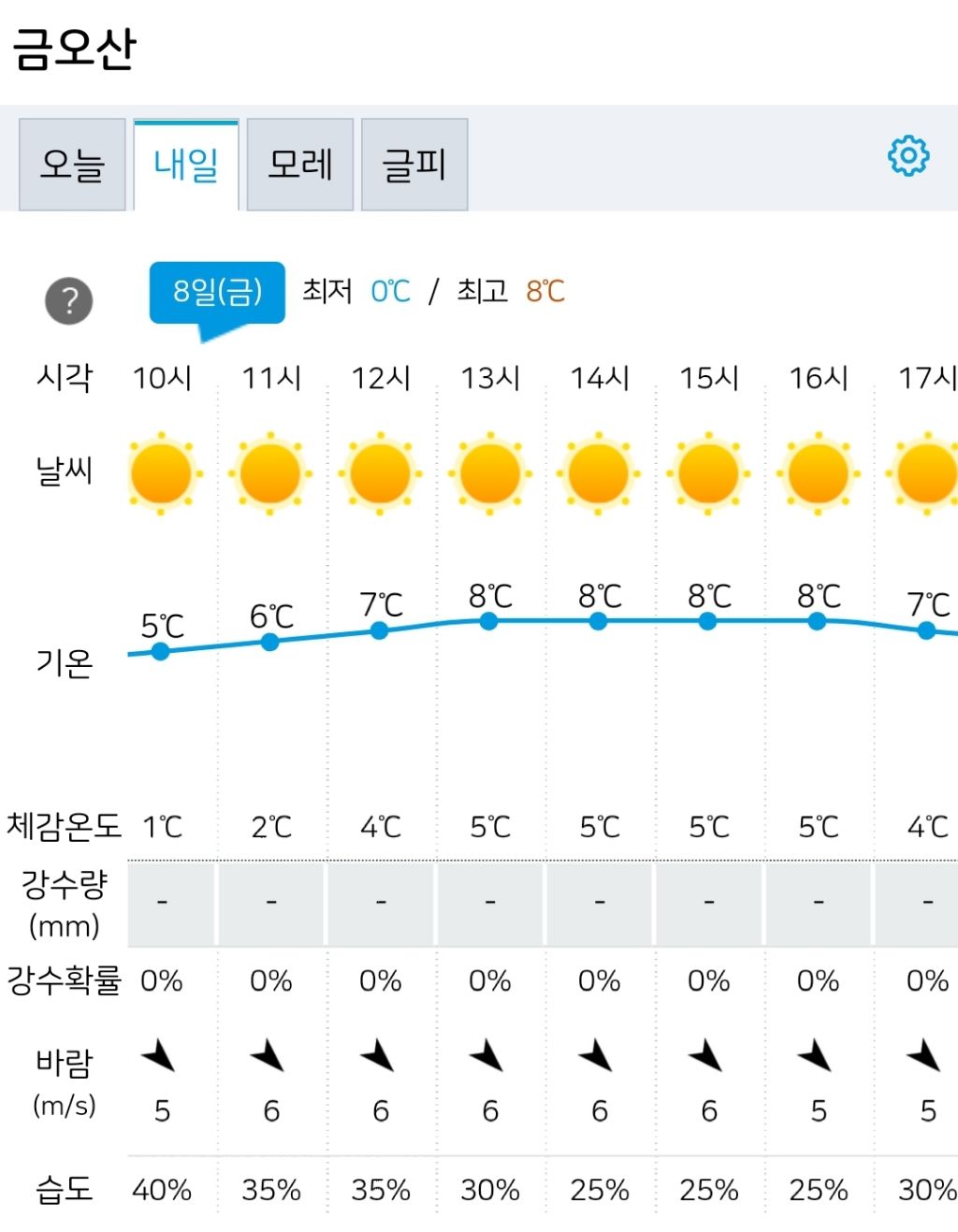 ●3/8(금) 금오산 지역 일기 예보 :