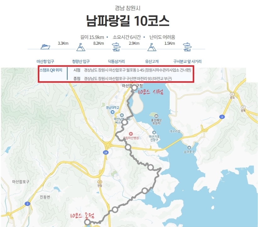 ㅇ10코스 종점 : 경남 창원시 마산합포구 구산면 마전리 93 (마전교 부근)