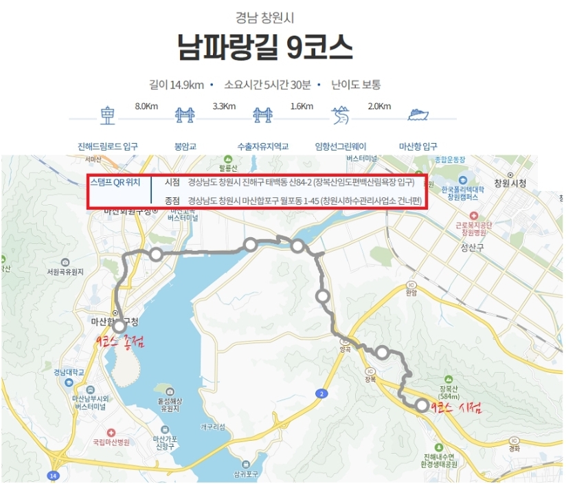 ㅇ9코스 종점/10코스 시점 : 경남 창원시 마산합포구 월포동 1-45 (창원시하수관리사업소 건너편)