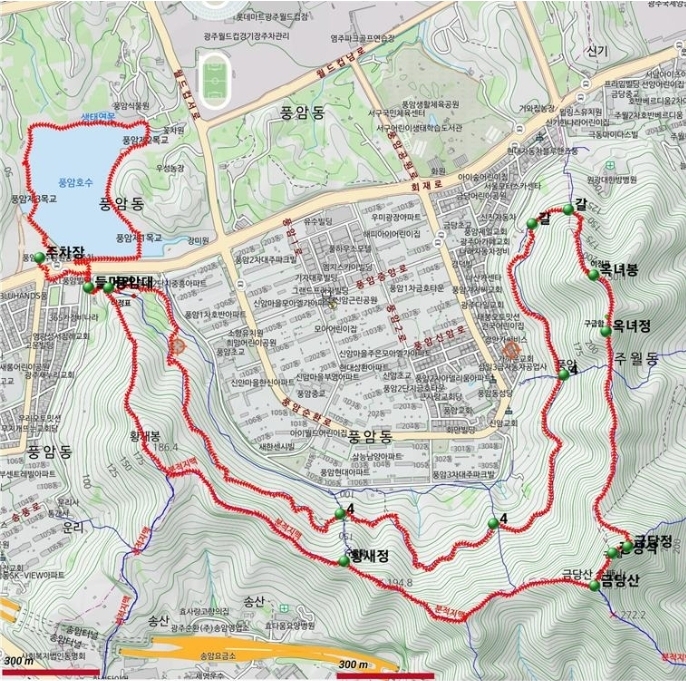 ㅇ 광주 금당산+풍암호수 단풍길 : 풍암호수공원주차장-황새봉-금당산(명산100+, 달빛산행 챌린지 05:00 이전 인증)-금당정-옥녀봉-빛고을산들길-풍암호수 단풍길-풍암호수공원주차장 원점회귀(약 9.3km/5시간)