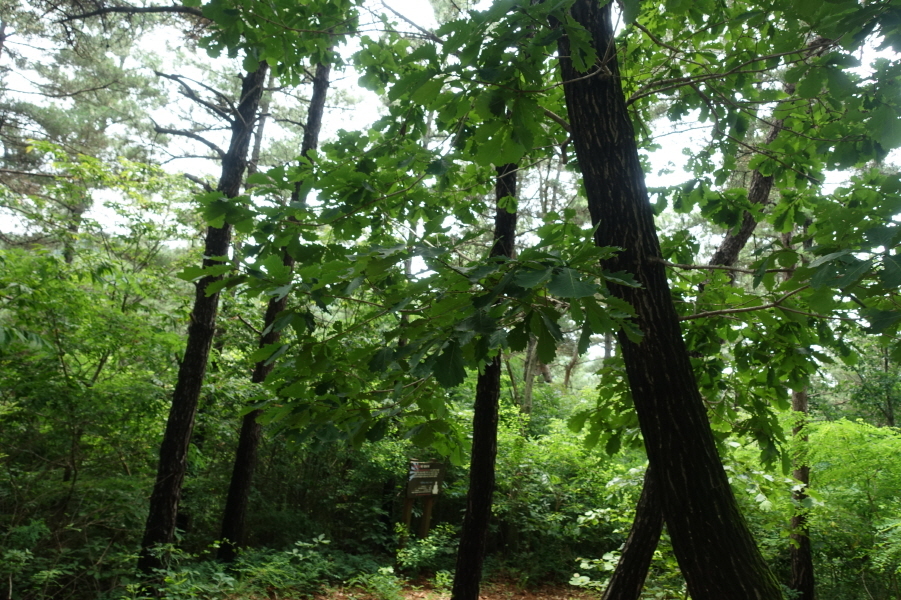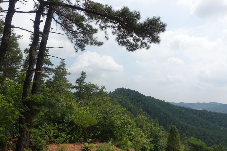(12;41)전주이씨묘지를 지나고 줄지어 서있는 묘지를 갓길로 올라 (12;45) 지나온 묘지를 길게 내려다보고 숲길로들어서 희미한 길따라 오름길 오른다. (12;50)능선에 붙어 우측으로 좋은 등로따라 진행하여 오르면 (13;00)천단봉이다.[1.3km][40분]