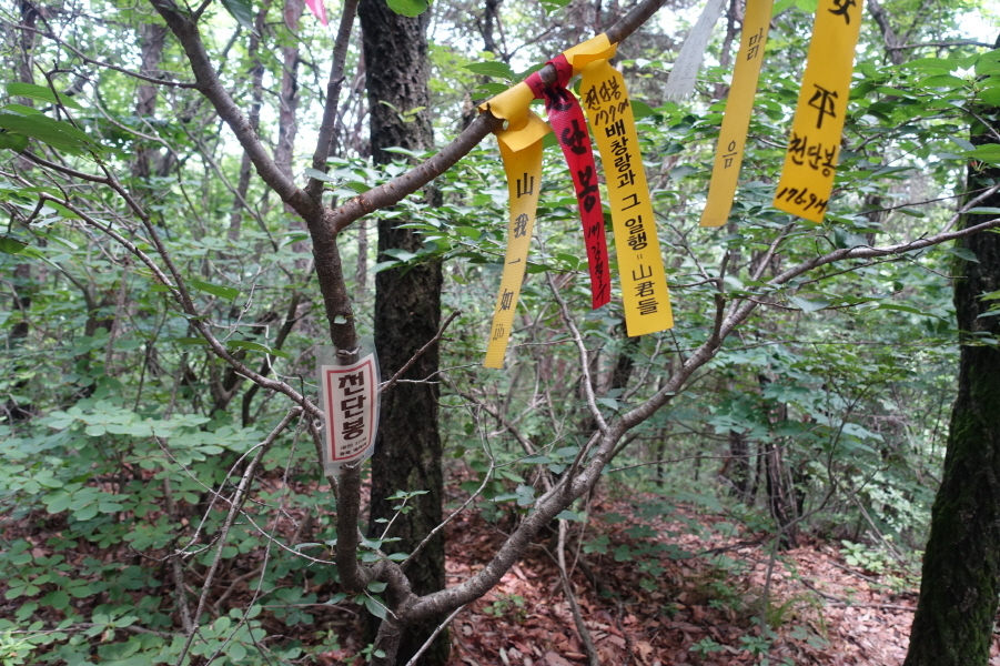 13;20~13;22[2분] 천단산정상 선답자님들의 표지기입니다.