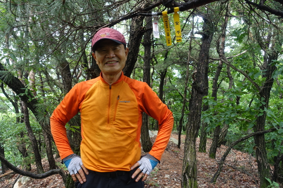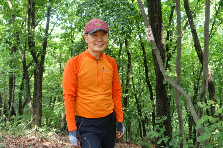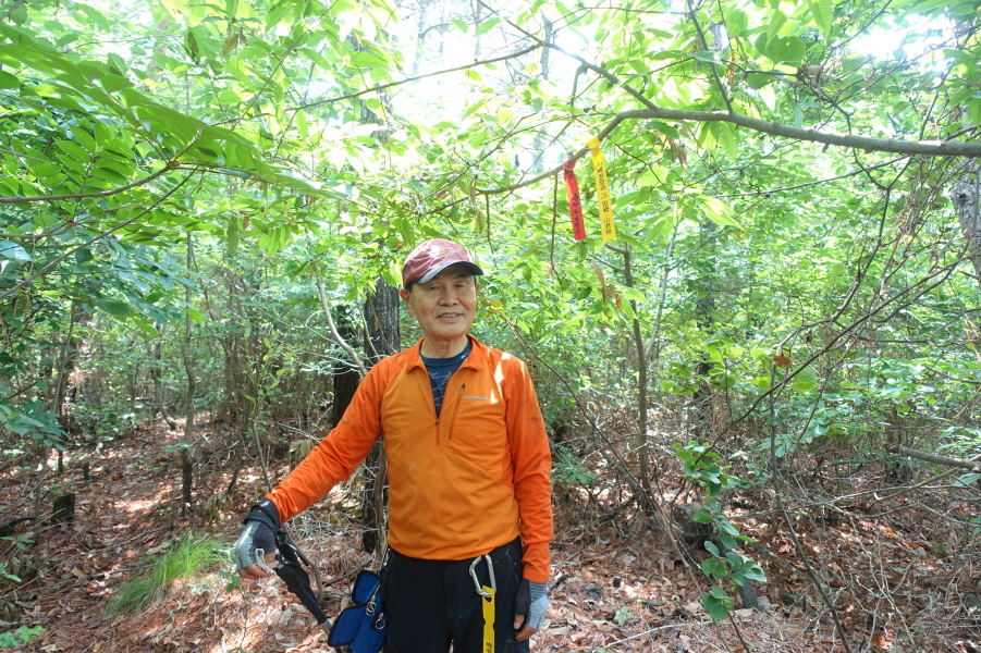 무더운 날 힘들게 오른 이름도 이상한 산 앰봉이다. 나무로 만든 허름한 간이의자에 앉아 간식과 휴식시간 (12;05~12;20)15여분 갖고 왔던길로 Back 한다. 좋은 등로 3개와 희미한등로 1개가 합쳐진 정상이다. 희미한 등로를 찾지못해 정상에서 잠시 3개의 등로를 왔다 갔다 하다가 겨우 왔던길을 찾아 되돌아 온다.