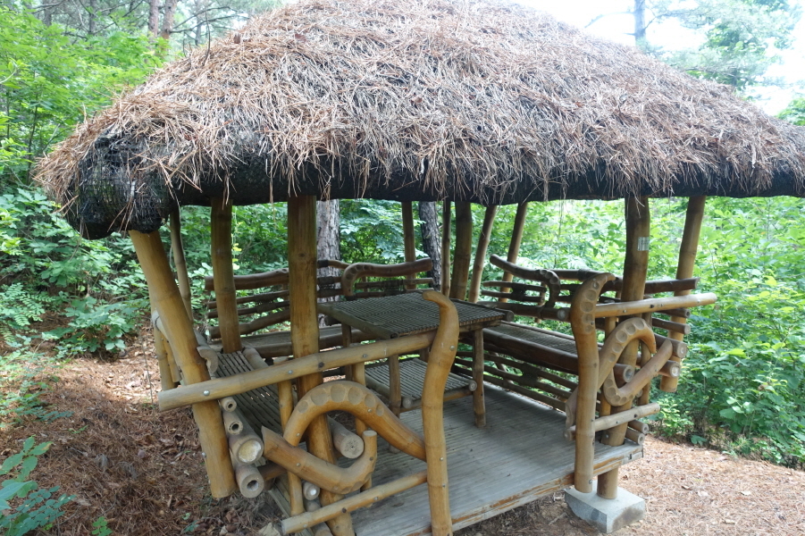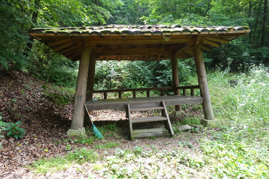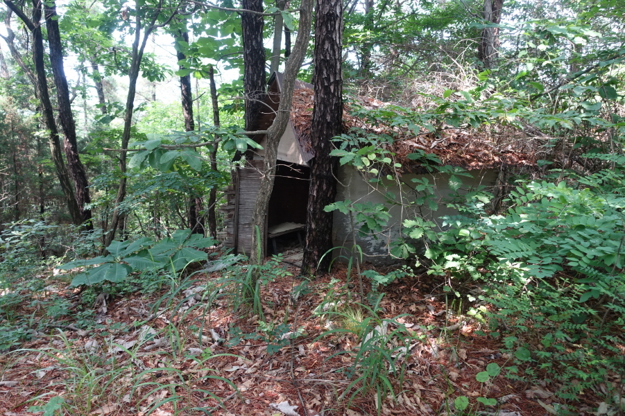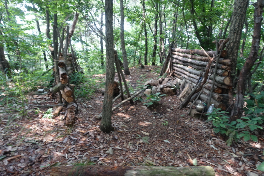 (14;54)목재 울타리를 갖추고 불피운 흔적이 있고 주전자와 물병이 있는 쉼터 봉입니다.