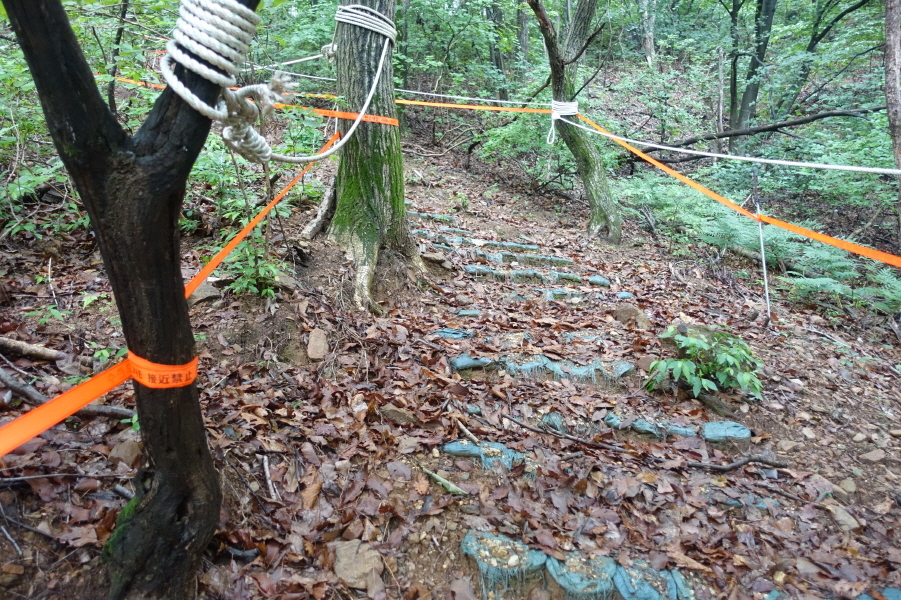 급경사내림구간에는 픽스로프도 깔려있다. 산악오토바이 족들이 등로를 많이 훼손한 길이다.