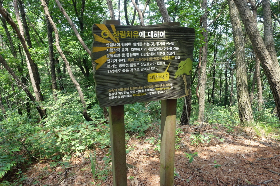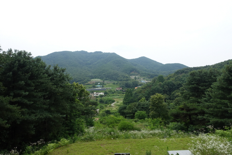 (11;13)302봉에서 좋은 길따라 완만하게 내림길 내려선다. 능선갈림길에서 좌측길 따라 마을 길에 내려서고 (11;35) 성주교를 건너 마을포장길 따라 진행한다. 3거리에서 좌측도로 따라 (11;40)씨엔지하이테크 공장을 지나 3거리에서 포장도로 버리고 우측비포장 도로따라 (11;50)"예안이씨 가족묘지"따라 올라선다. (11;53)묘지를 내려다보면서 풍광즐기고 숲길로 들어서 능선오름길 오른다. 능선3거리에서 앰봉을 왕복한다. 완만한 등로따라 오르니 넓은공터 (12;05)앰봉이다.[3.0km][52분]