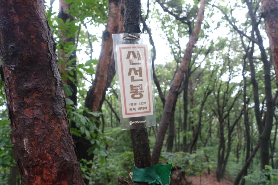 302봉 공터봉(잘못된 지도상 신선봉 ?/안평님은 신성봉으로, 산석동산님은 신선봉으로 표시된 표지가 322m 봉 신선봉(1)과 혼란을 줄듯 싶어 떼어낸 것으로 판단 다시 걸어도 마찬가질듯 싶어)에서 땅에 떨어져 뒹군 표지기이지만 양해구함 없이 회수해 온 신선봉 표지기 2장을 국립지리원 발행 e-동아지도상 238.7m 신선봉(2)에 걸어두고 신선봉써서 표지기 그옆에 부착하고 인증사진 남긴다.