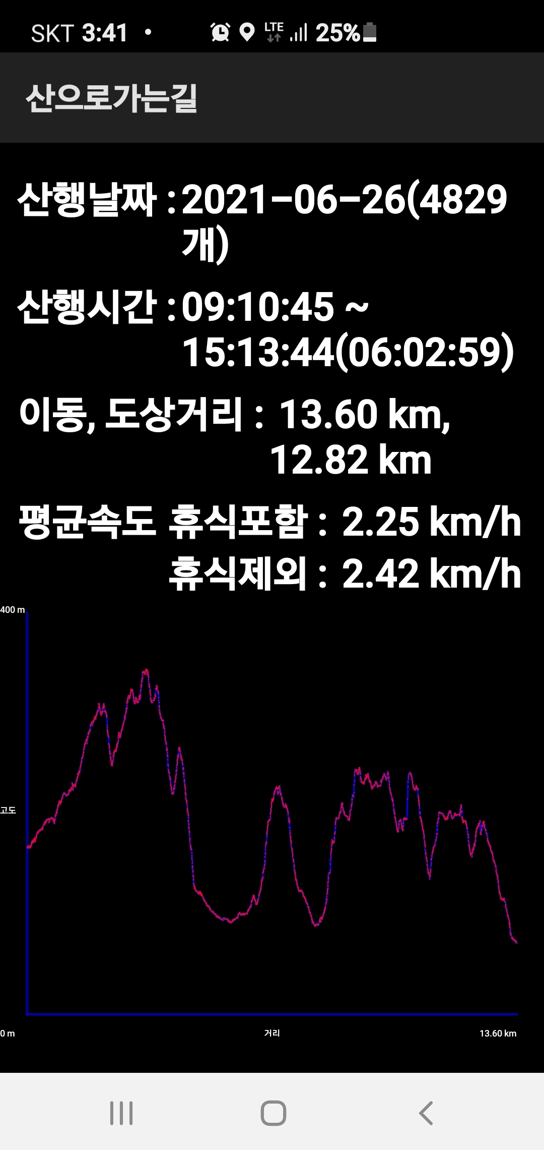 산행일자;2021.6.26(토). 날씨;흐림. 산행거리;약13km. 산행시간;6시간0분.