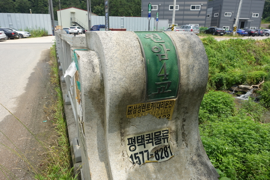 능선3거리에서 좌측능선으로 내림길 내려 (12;40)원암4교를 건너 우측으로 도로 따르다가(12;41)고앙을 좌측에 끼고 천단봉 등산로입구에 들어선다.