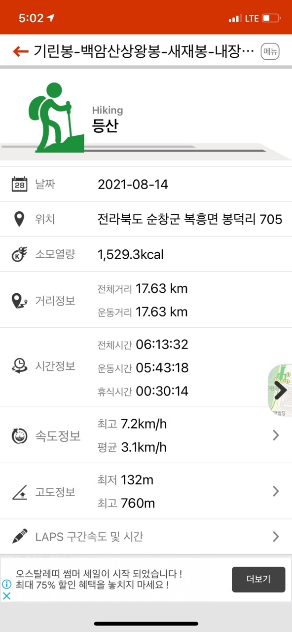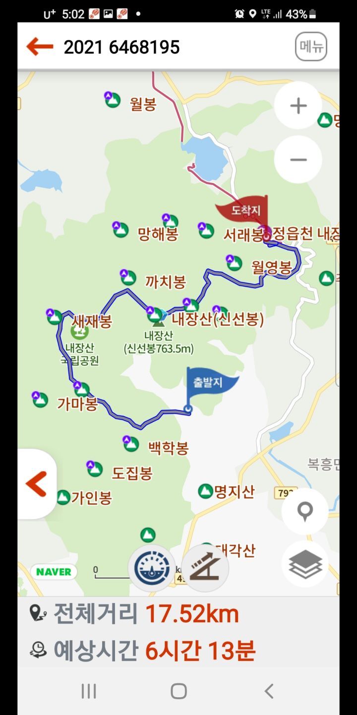 8/14일(토)백암산+상왕봉~내장산+신선봉+연계산행 17.5km 6시간15분 소요 작성자흰구름|작성시간21.08.14|조회수353 목록 댓글 0 글자크기 작게가 글자크기 크게가 다음검색 현재 게시글 추가 기능 열기 북마크 공유하기 신고 센터로 신고 댓글 댓글 0 댓글쓰기 답글쓰기 댓글 리스트