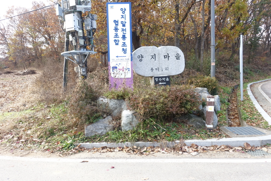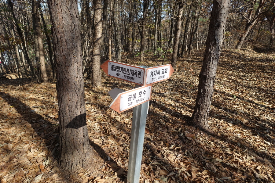 (11;23)이정표(겨자씨교회300m/풀꽃향기펜션/체육관공릉호수약500m)입니다.