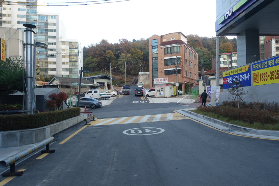 12;34 양지마을 표지석 서있는 한민고갈림 3거리 입니다.
