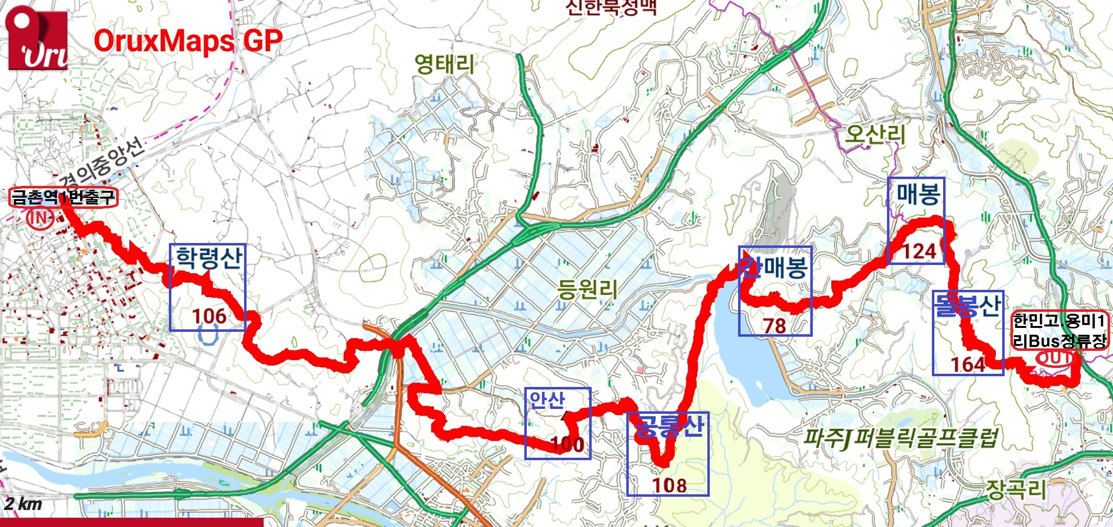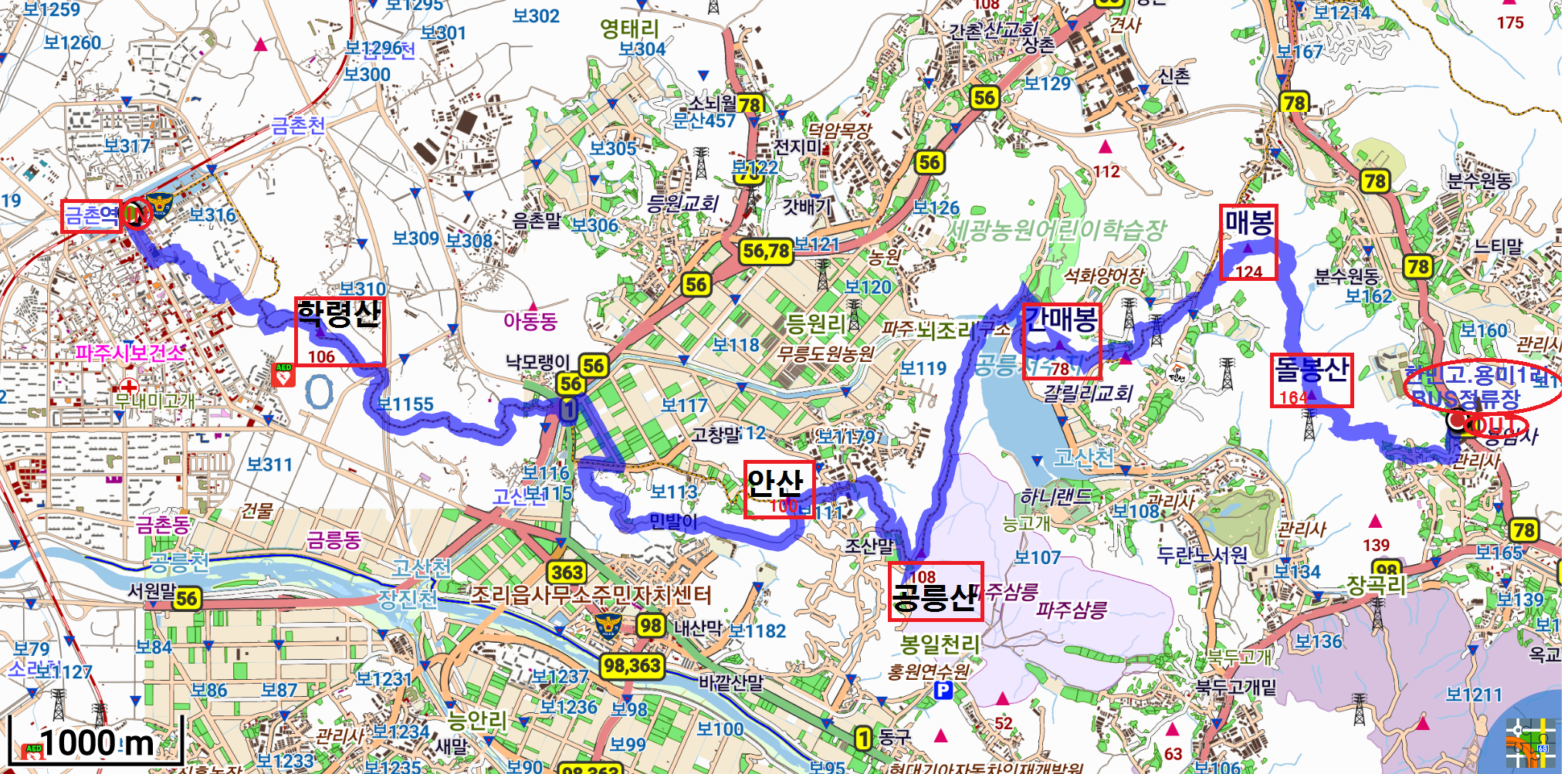 금촌역.학령산.안산.공릉산.간매봉.매봉.돌봉산 . 한민고버스정류장 트랙입니다.
