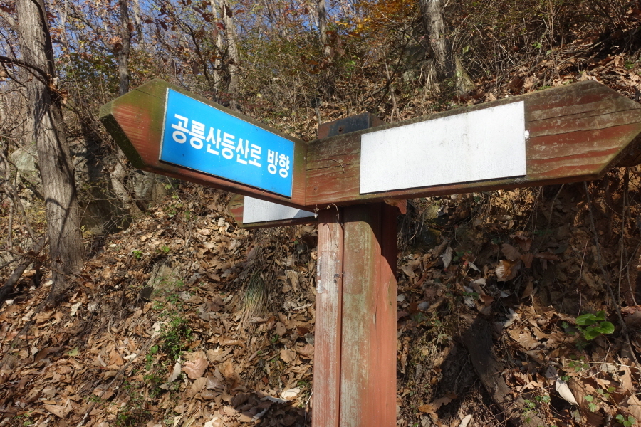 (10;50) 이정목(***/***/ 공릉산 등산로 방향) 입니다.(10;48)공릉저수지 배수로 다리를 건너 뚝방을 지나면 만나는 이정목입니다.공릉산입구(날머리)입니다.