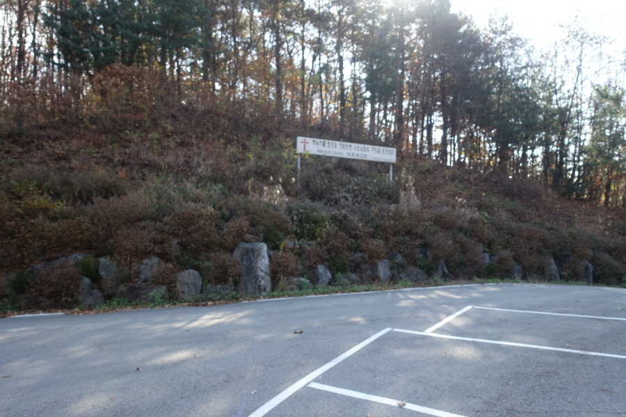 (09;59) 도로끝 우측 하얀색 건물쪽으로 갑니다. 하얀색 건물옆(좌측) 펜스문을 통과 하여 묘지쪽 산길진입합니다.