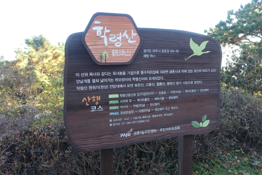 작성자배창랑작성시간21.11.15조회수444 목록 댓글 0학령산(鶴翎山106m).안산(100m).공릉산(恭陵山108m).간매봉(78m).매봉(124m).돌봉산(184m)/경기 파주