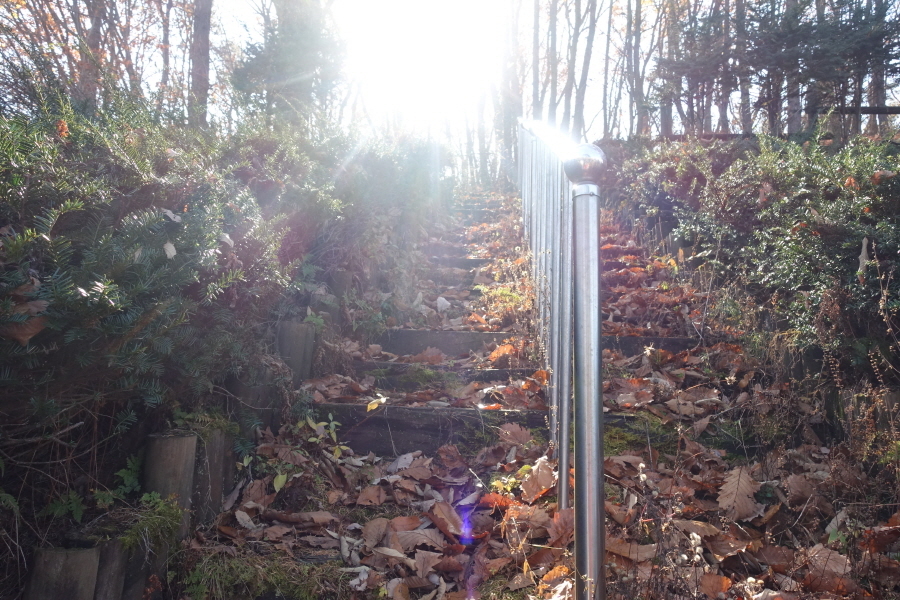 (11;27) 우측으로 돌계단과 스텐레스 난간이 설치된 등로입니다.교회 진입로를 따라 들어가면 도로끝나는 교회 사택지점 우측입니다.