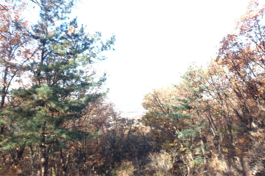 (10;43)우측으로 공릉 저수지가 내려다보입니다.(10;25)정상에서 삼릉의 철망울타리(문화재청에서 조선왕릉<삼릉>의 관리를 목적으로 능선상에 쳐놓은 철조망) 를 따라 650m 정도를 진행하니 울타리는 우측으로 가고 울타리 없는 능선길을 따라 더 진행하여 만나는 풍광입니다.