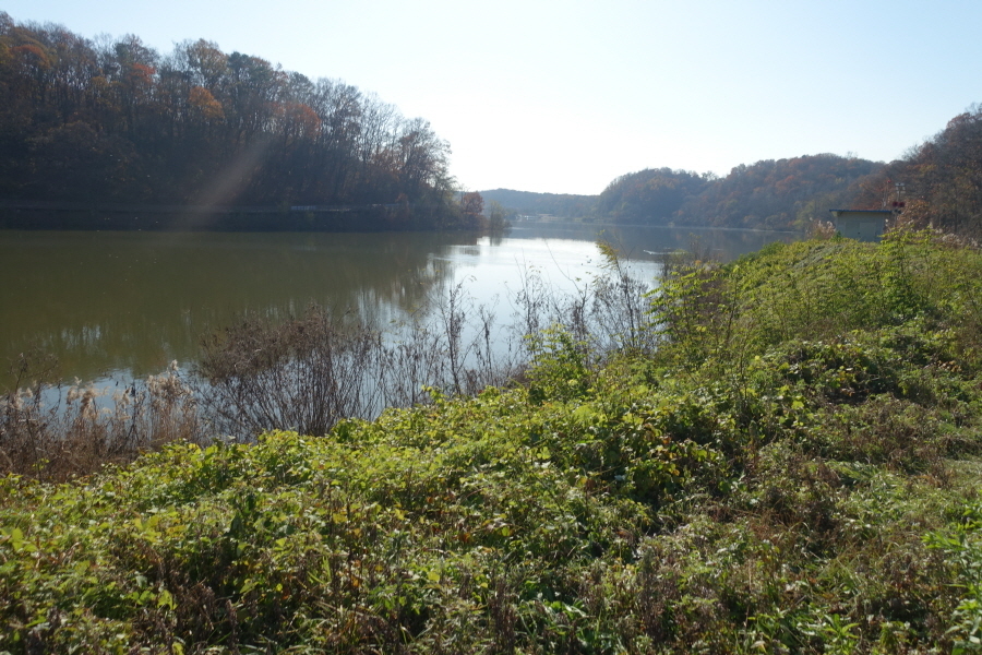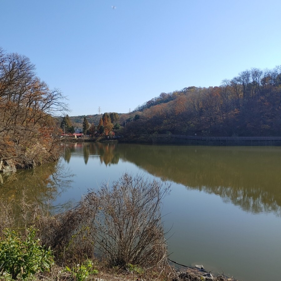 10;48 공릉저수지 뚝방에서 바라몬 공릉 저수지 입니다.