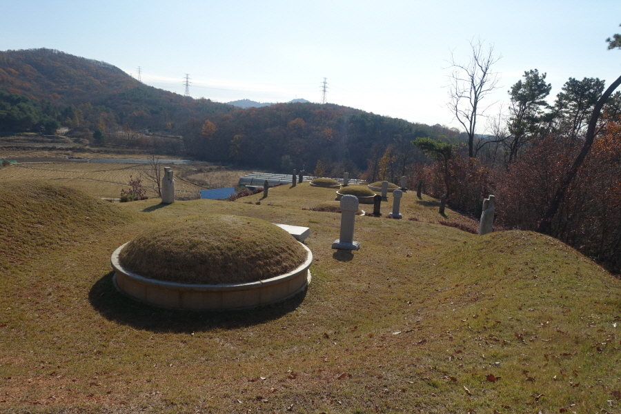 (11;38) 우측아래 조망이 터진곳에 석물(문인석)을 잘 갖춘 묘지군입니다.