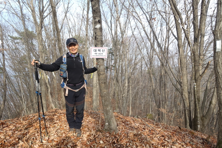 (13;55~13;56)[1분]새마포산악회에서 부착한 대덕산정상 표지판(대덕산 해발 592m)입니다.