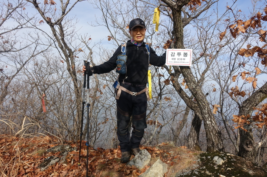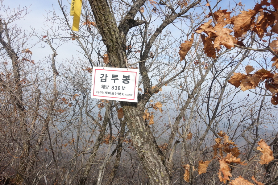 (12;32~12;33)[1분]새마포산악회에서 부착한 감투봉 정상 표지판(감투봉 해발 838m)입니다.