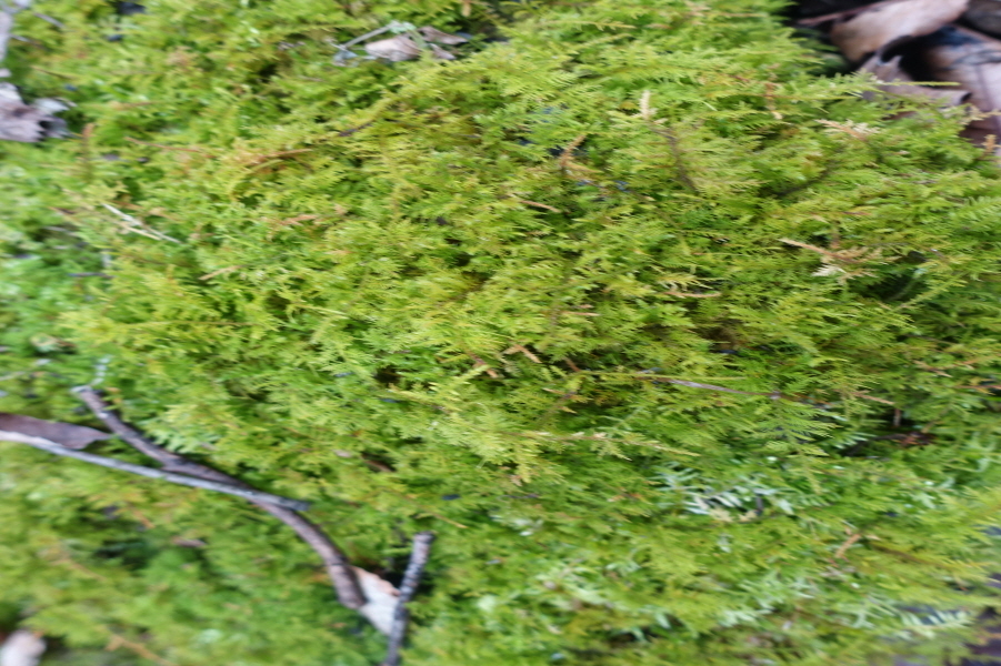 고산정상에는 삼각점(무주24)과 이정표(외송 6.1km/고산골 2.6km, (구)대구평 6.2km/)죽도 5.0km), 그리고 작은 표지판(깃대봉<고산> 해발 875.4m)도 있다. 주변이 막혀 있어 조망은 없다.