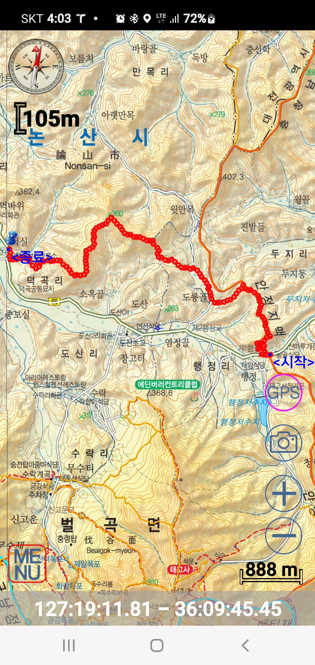0km 0분[태고사 3거리](10;05)