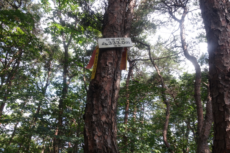 10;22 안산(1)(333m)정상에 부착된 맨발님의 표지판(안평지맥333.0m) 입니다.