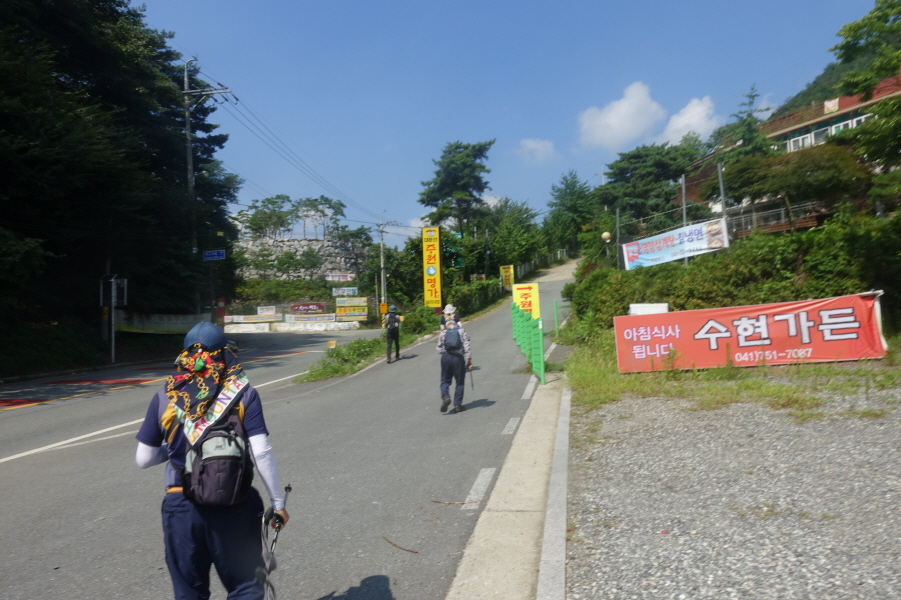 아이스박스에 어음물 로 시원하게 냉장된 막걸리1병 꺼내 함께 고생한 누리님과 더운 차안에서 건배 우선 목마름 달랩니다. 대충 베낭정리하고 덕곡리마을로 들어가 수도 공사하시는 분께 사정 하여 앞집을 소개 받아 들어가니 외출 중인지 아무도 안계십니다.염치불구하고 마당가 수도물 틀어 머리감고 수건에 물 뭏혀 상체 닦고 새옷 환복하고 하체 씻고 새옷 환복합니다.