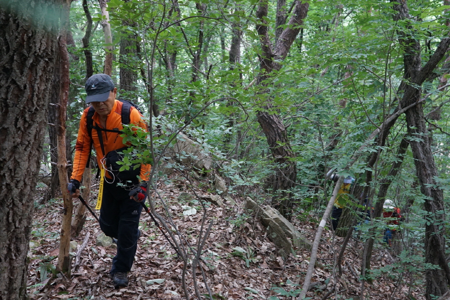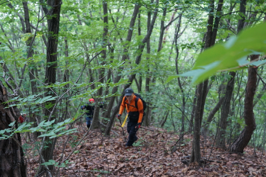 (11;17) 희미한 족적 따라 좌측능선을 향합니다. 좌측능선에 붙으면 등로가 좋습니다