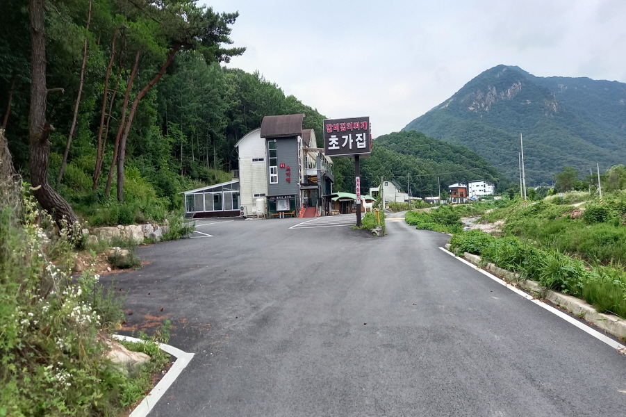 (09;44) 실질적 산행들머리 음식점"초가집" 직전 좌측 소나무 쪽입니다.