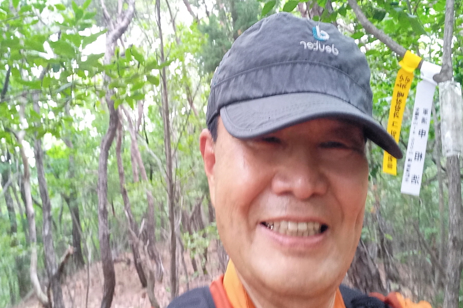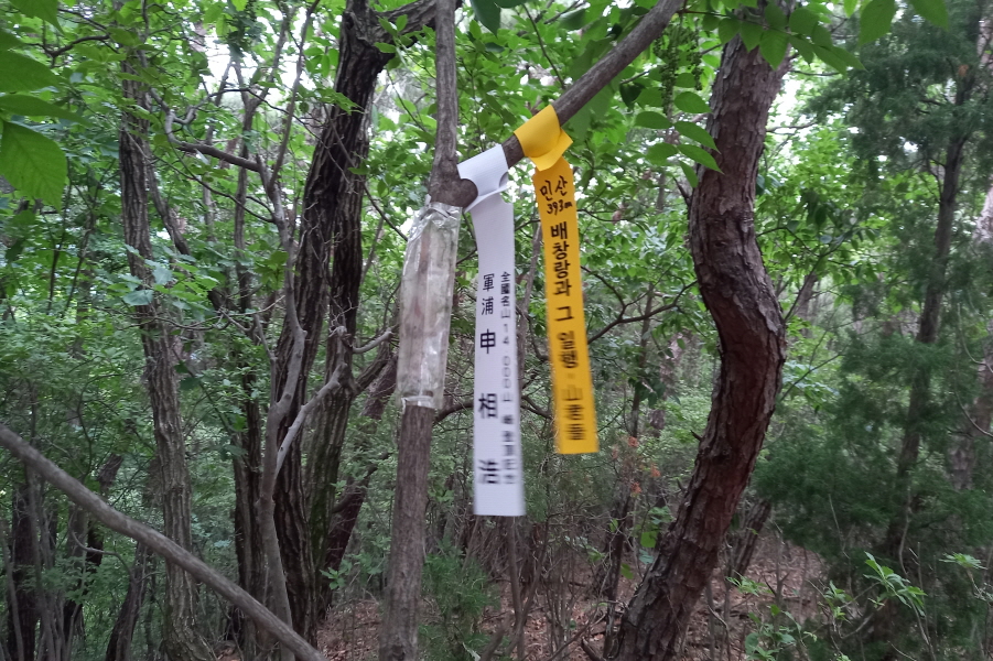 배하사님과 신상호 님 표지기 걸린 민산 (393m) 정상이다.