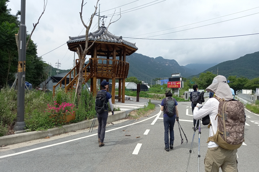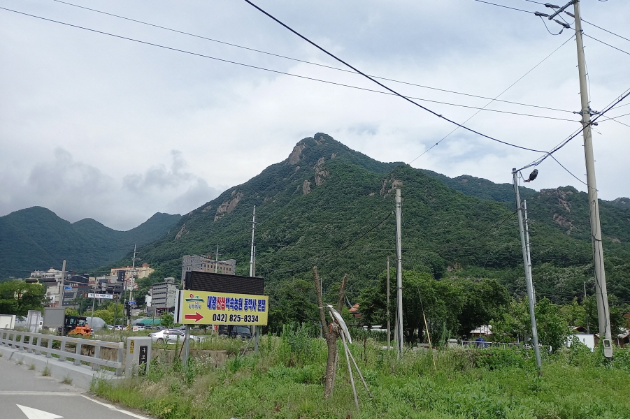 장마철인데도 비가 오지 않아 다행입니다. 공주 IC 빠져나와 산행들머리로 잡은 "충남공주시반포면 온천리 학봉 2교" 앞에 도착 (09;37) 산행시작합니다.
