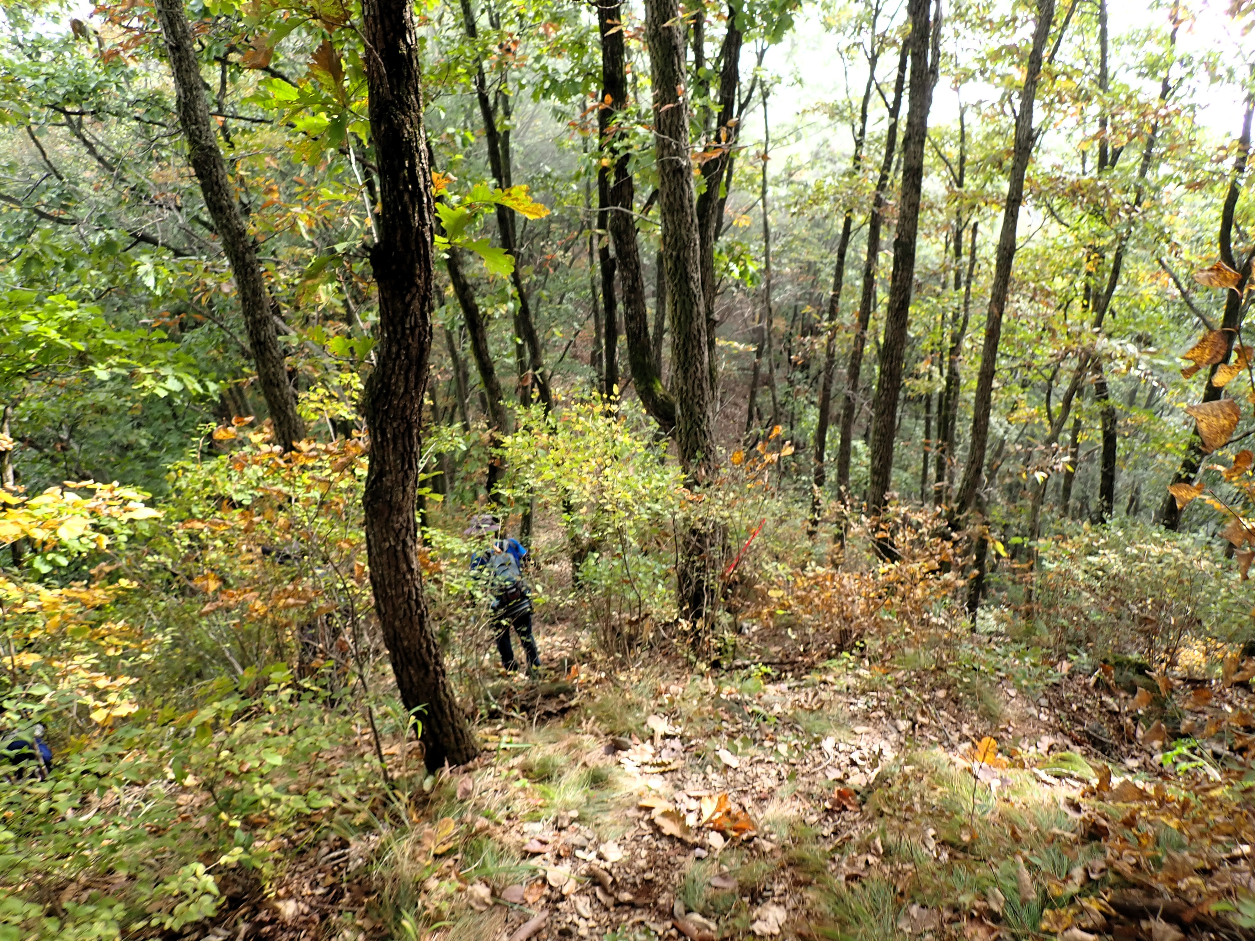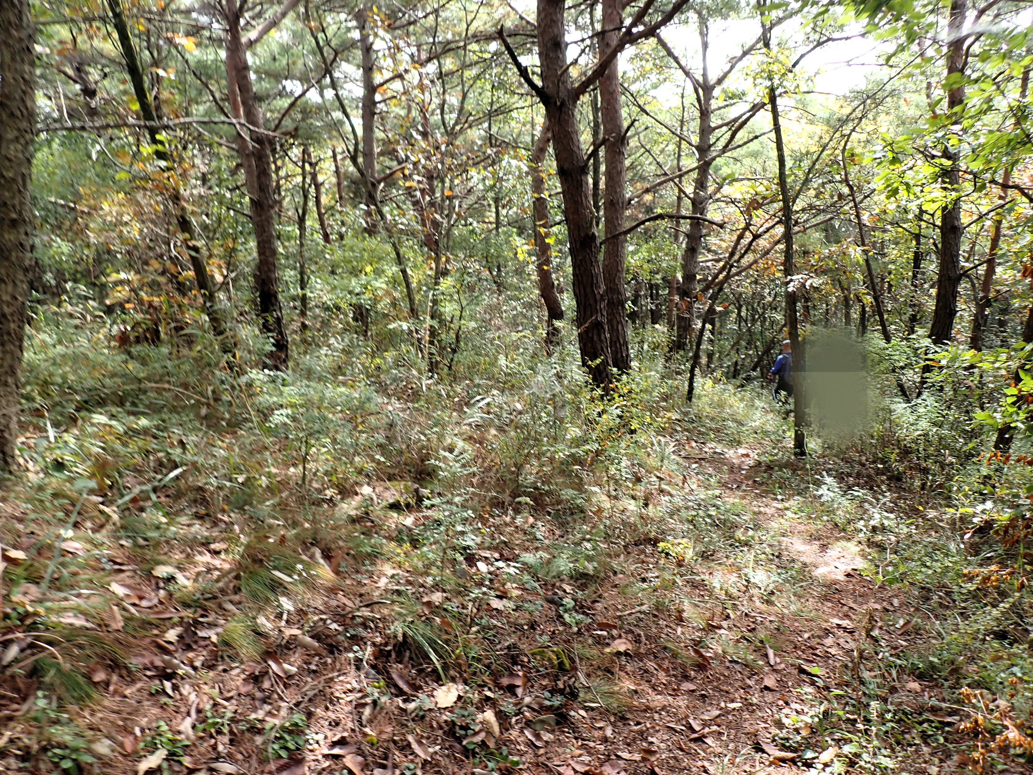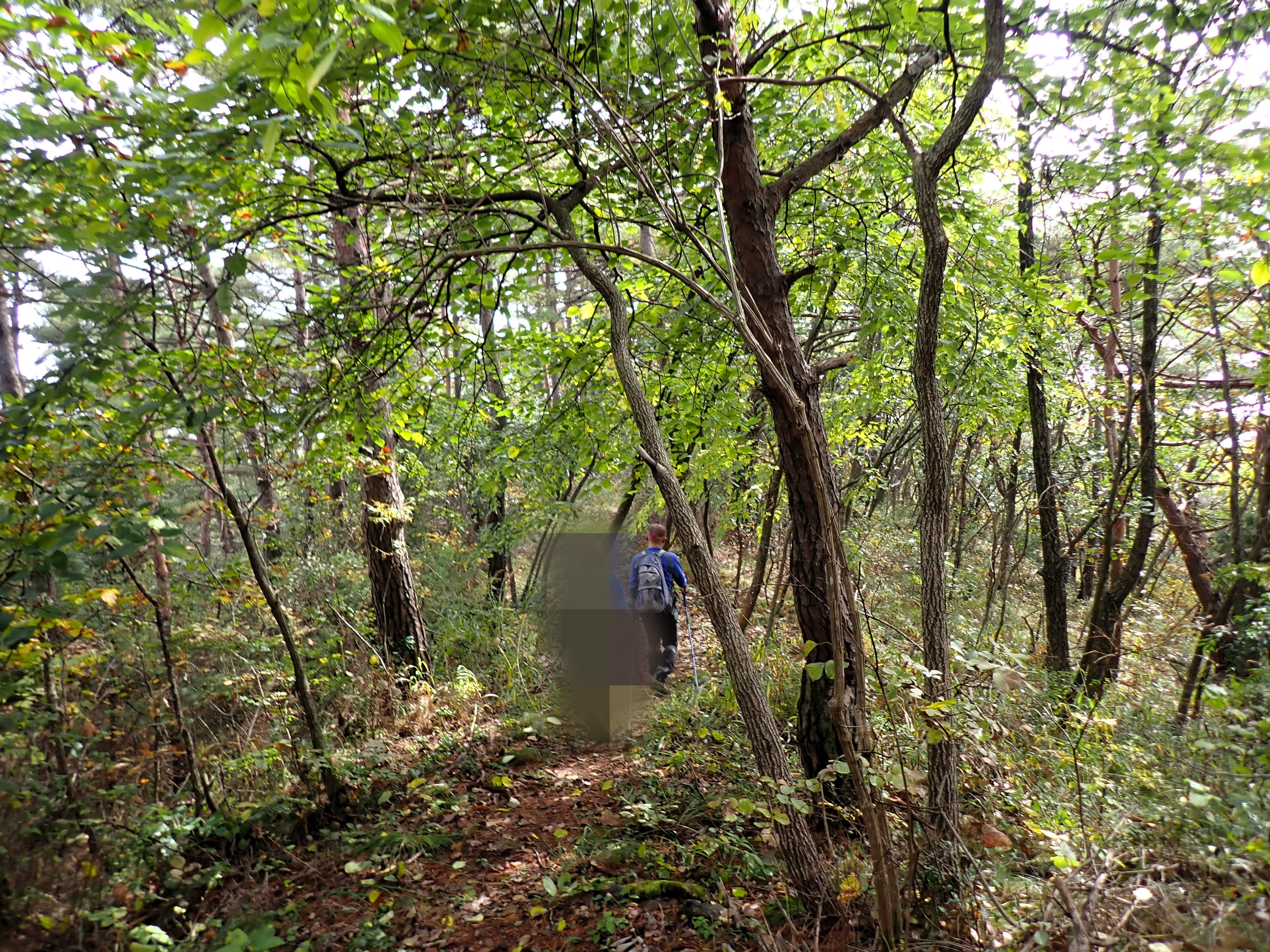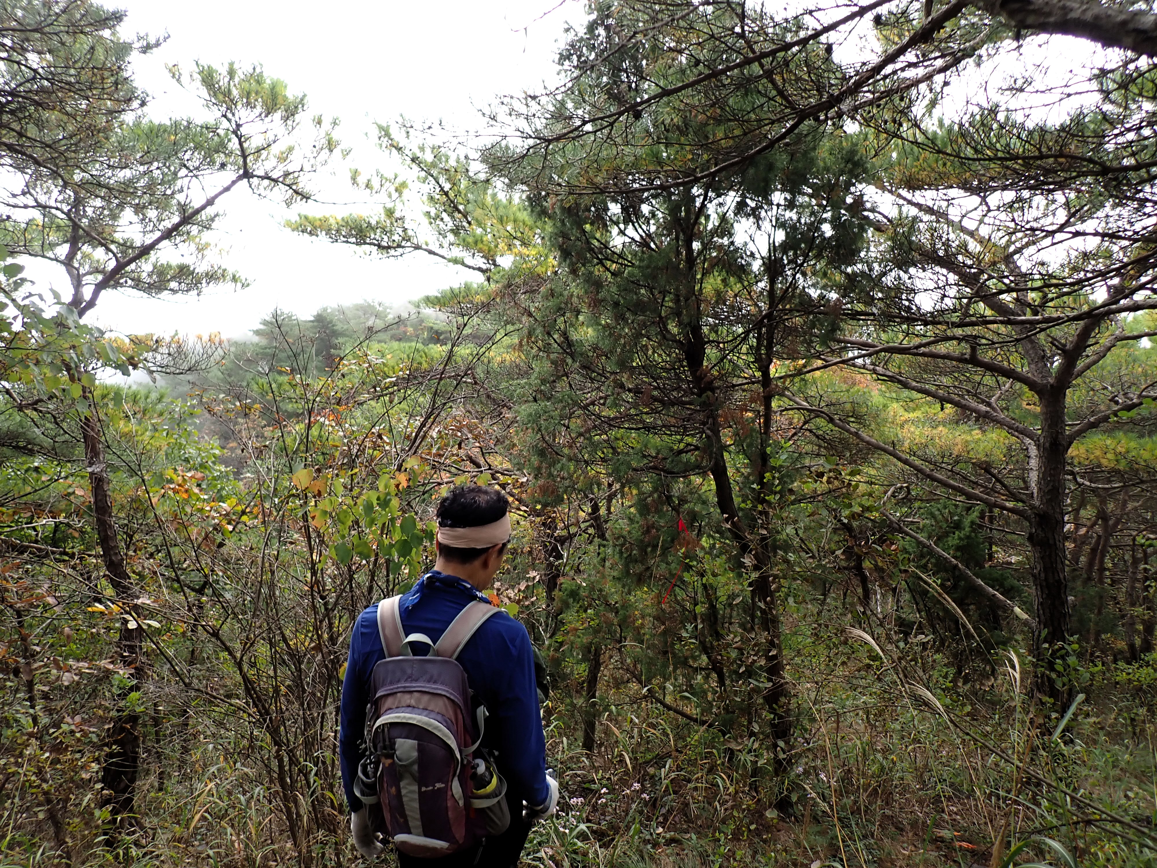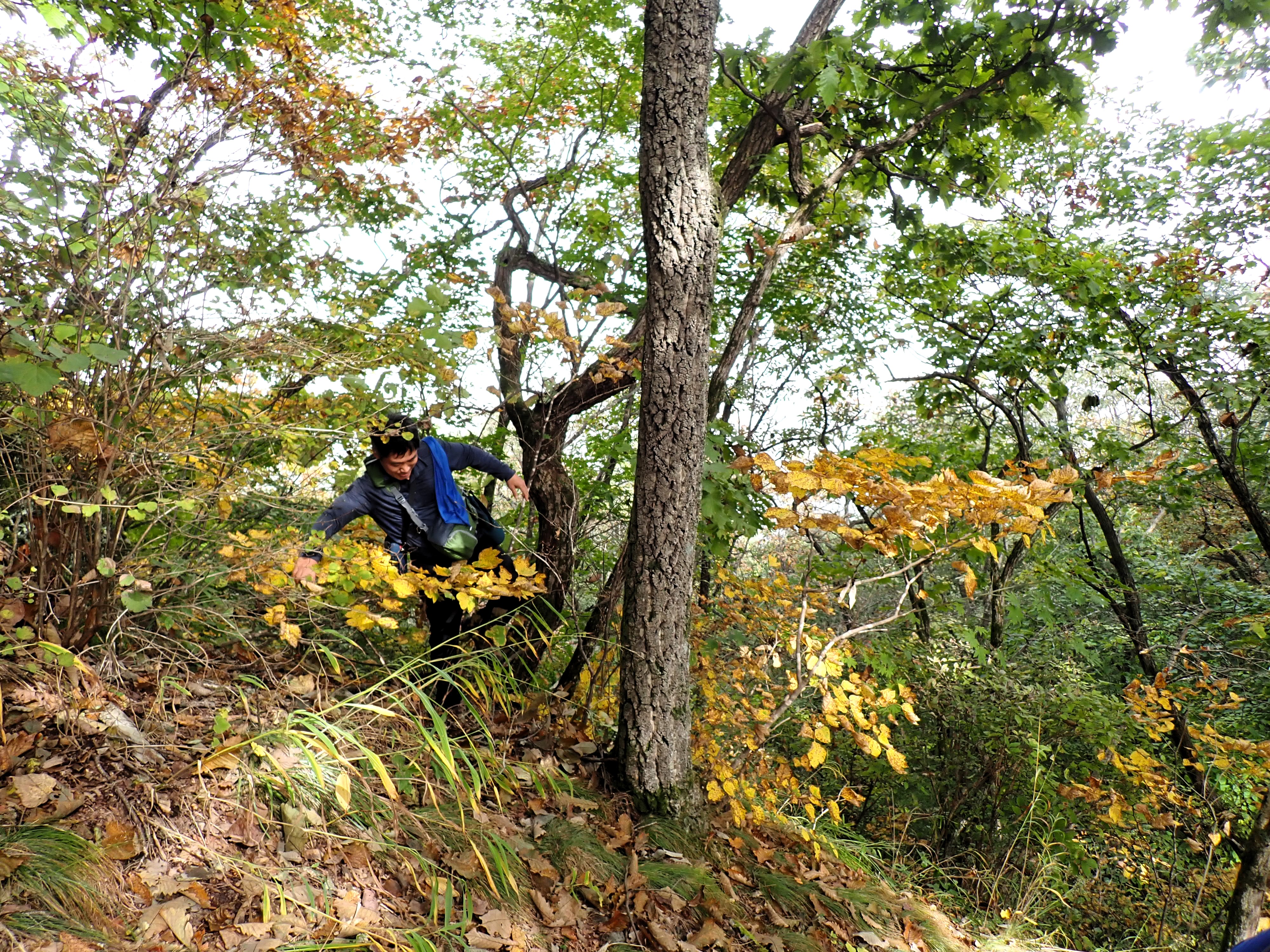 발아래 등로는 뚜렷하나 무릎 위로는 수풀이 우거져 가려버렸다