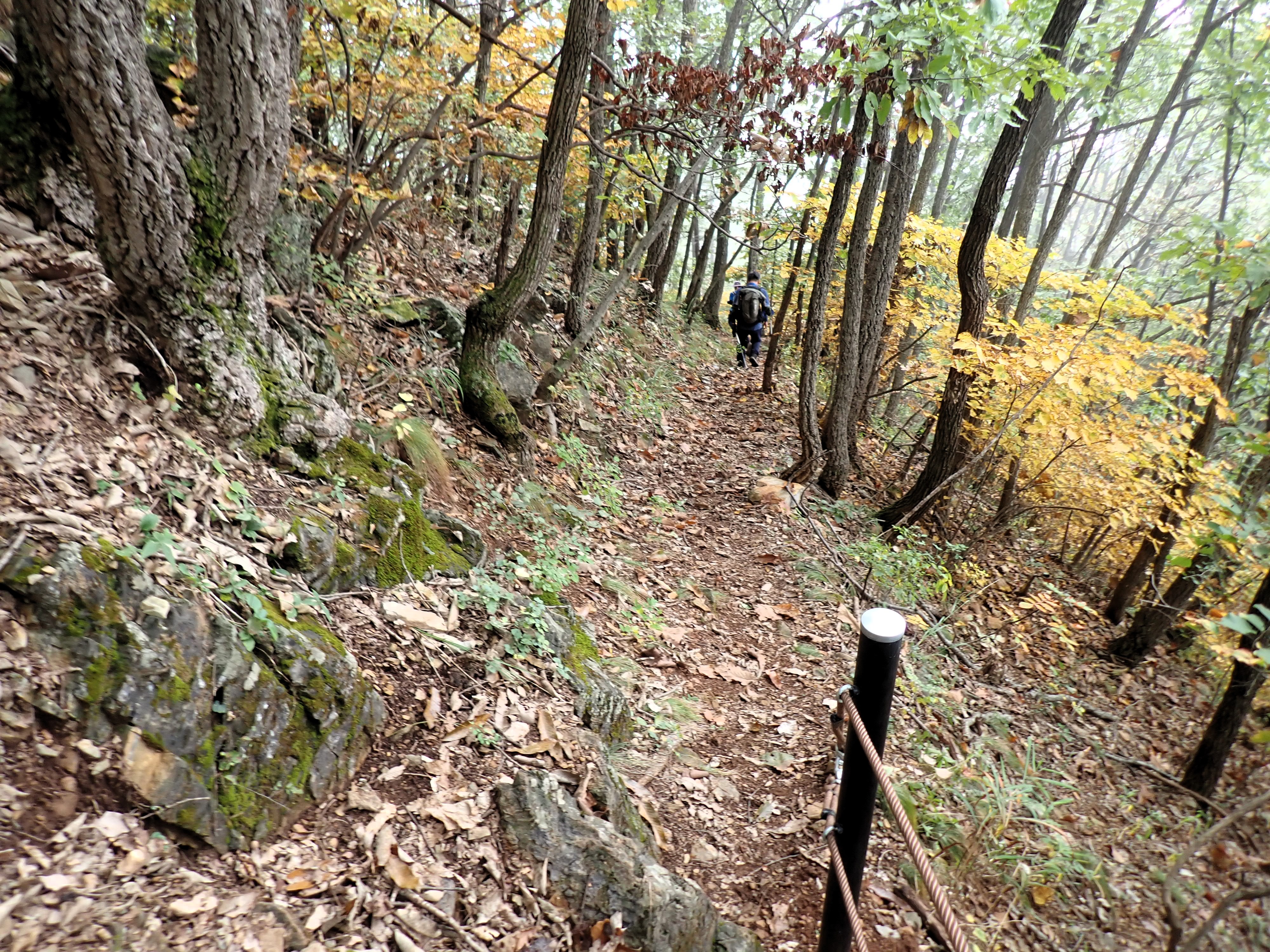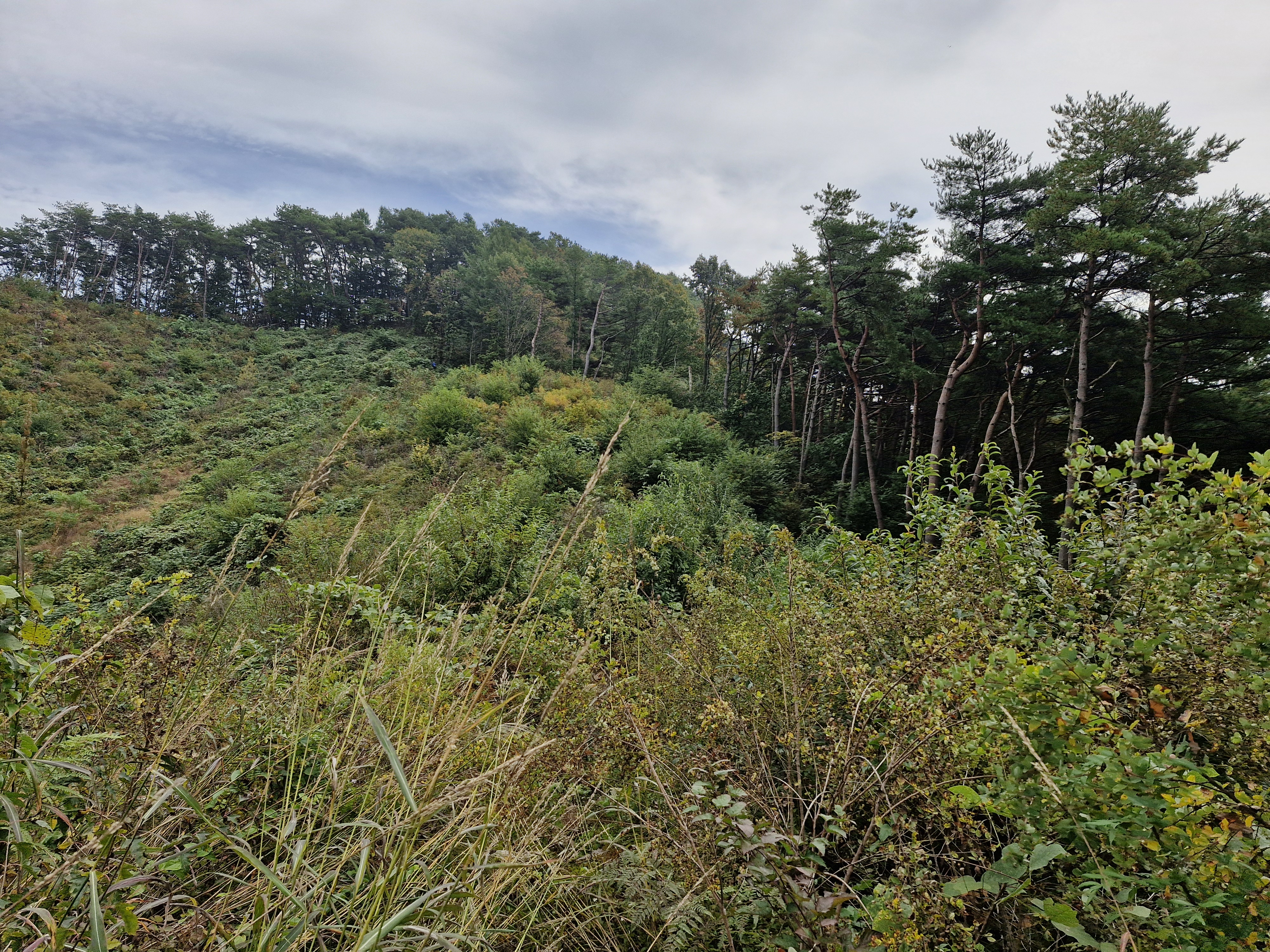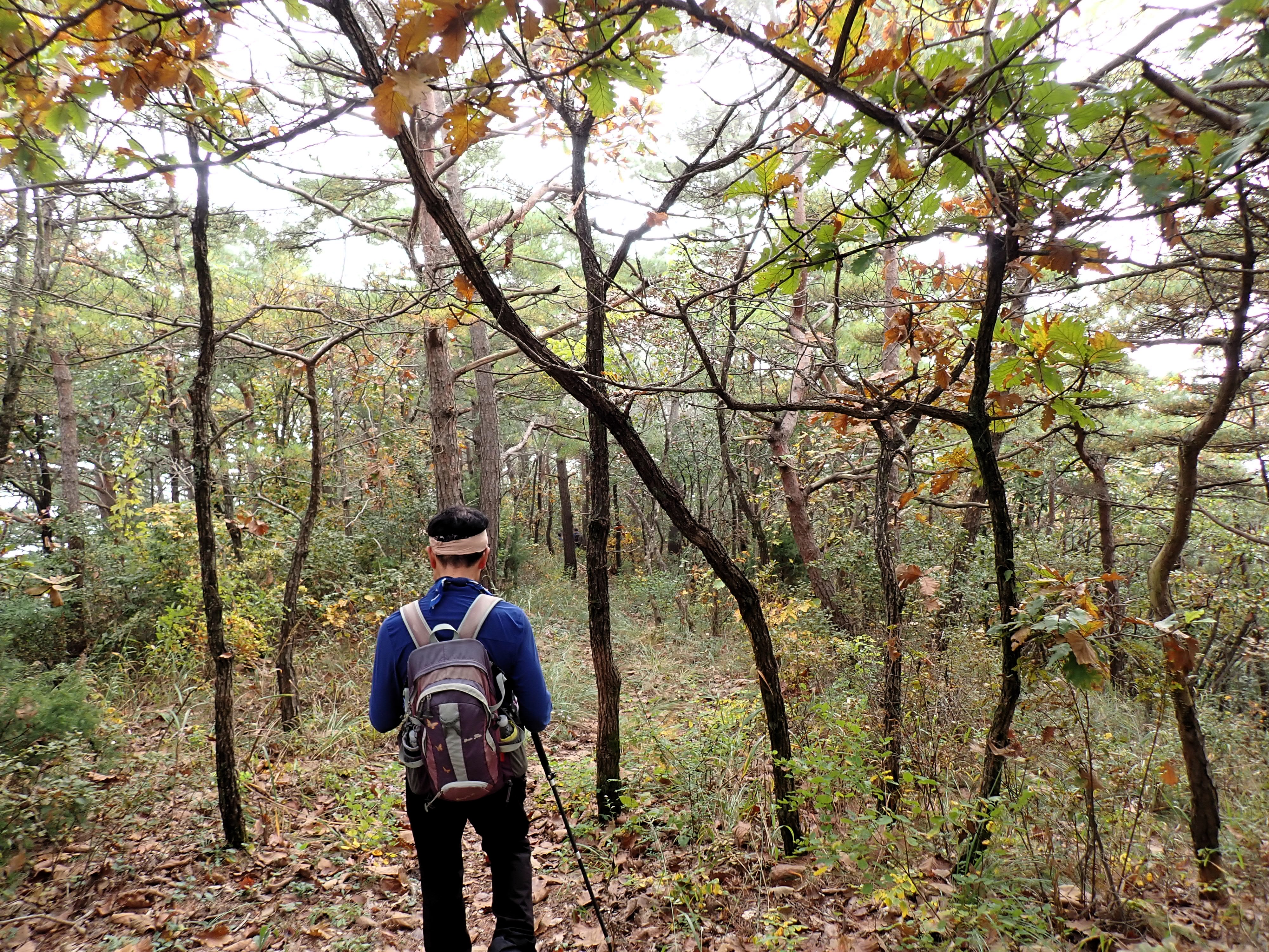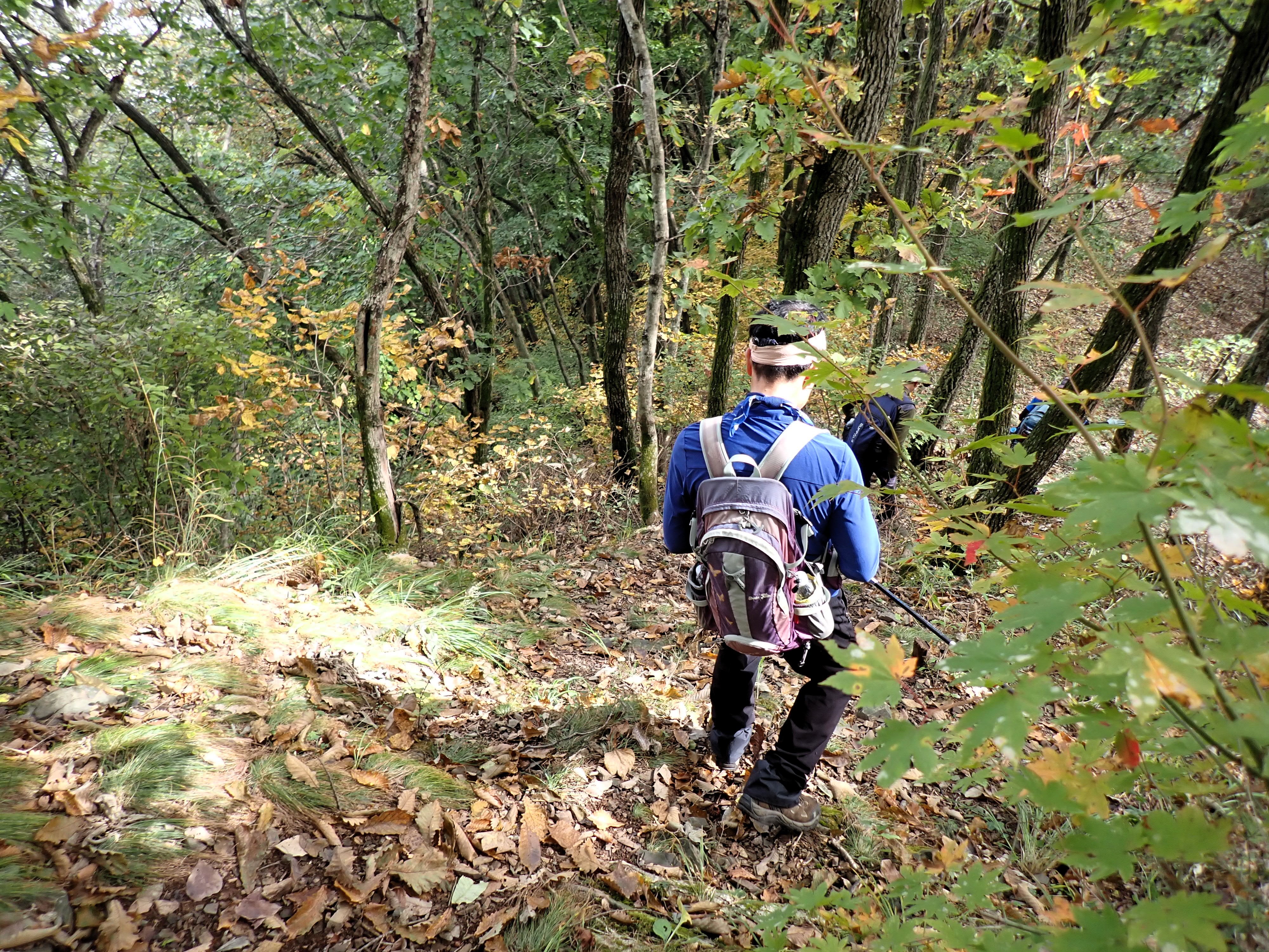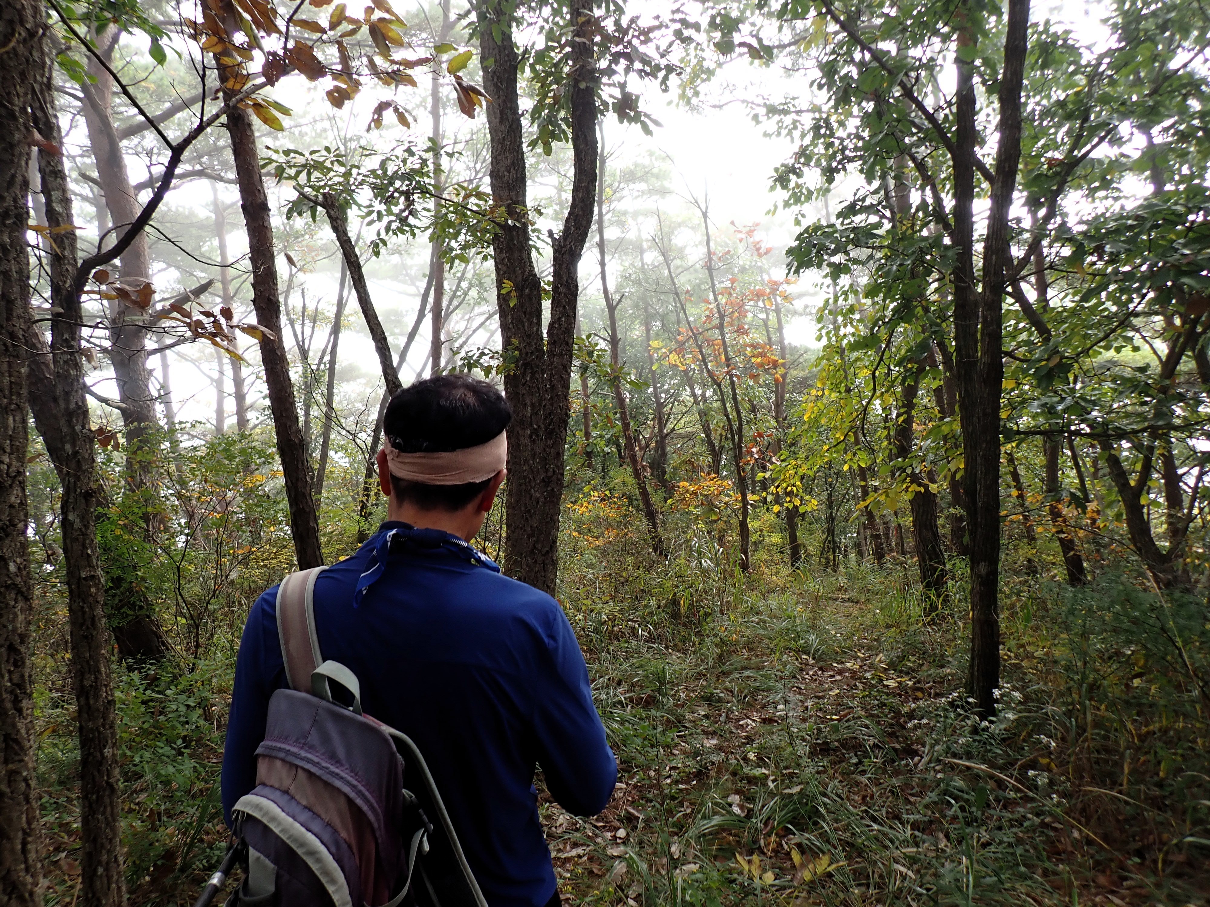 발아래 등로는 뚜렷하나 무릎 위로는 수풀이 우거져 가려버렸다