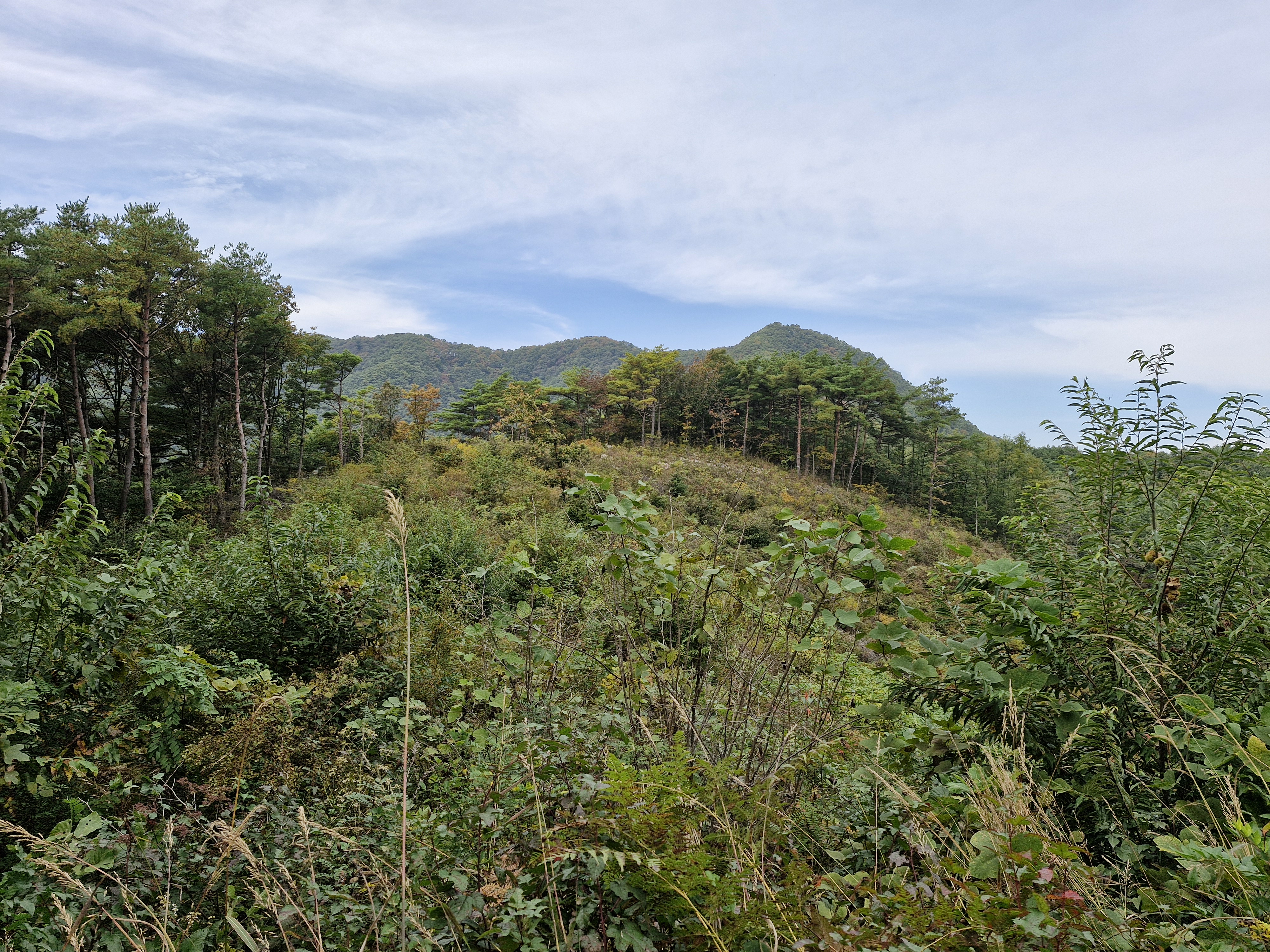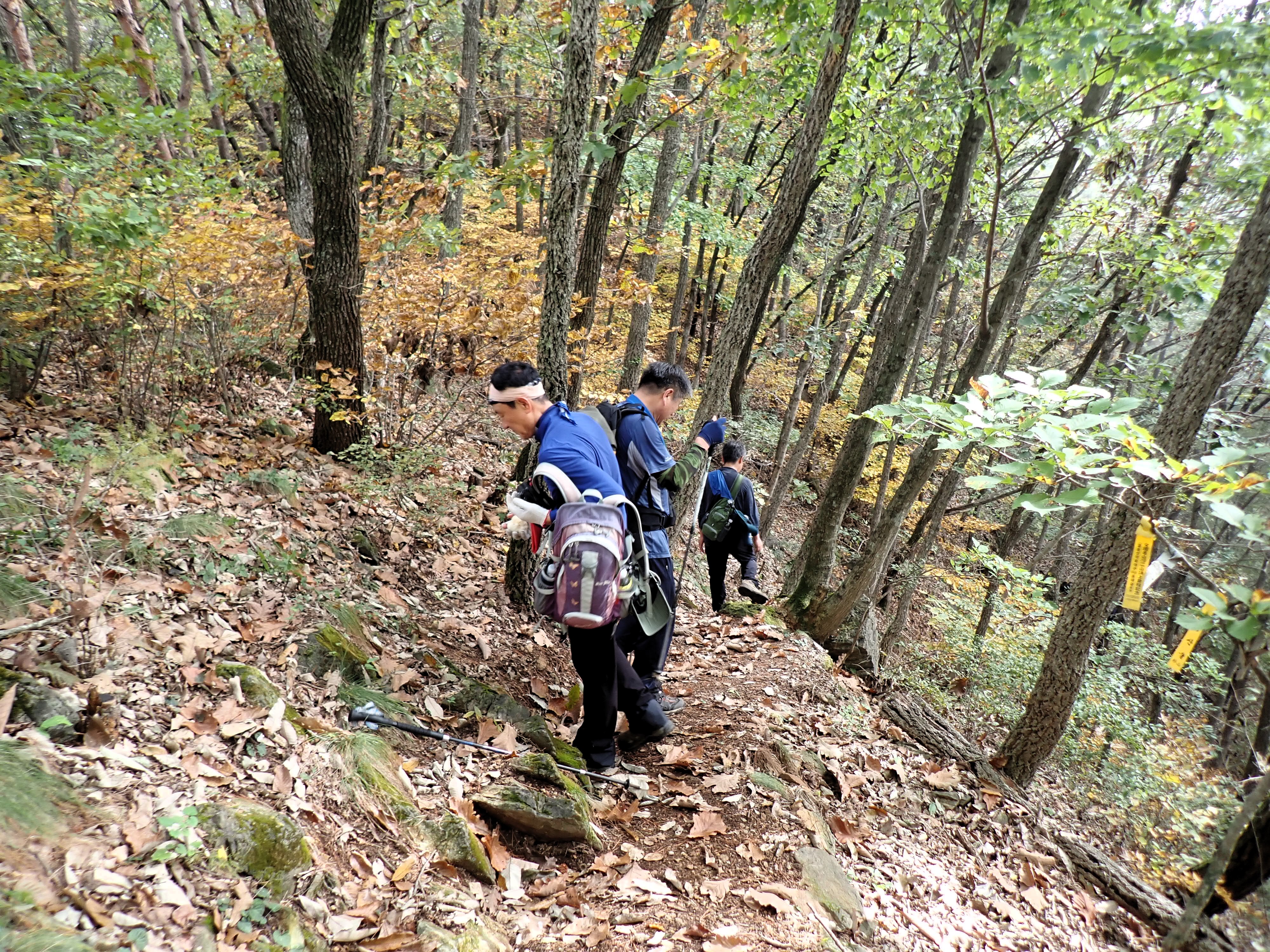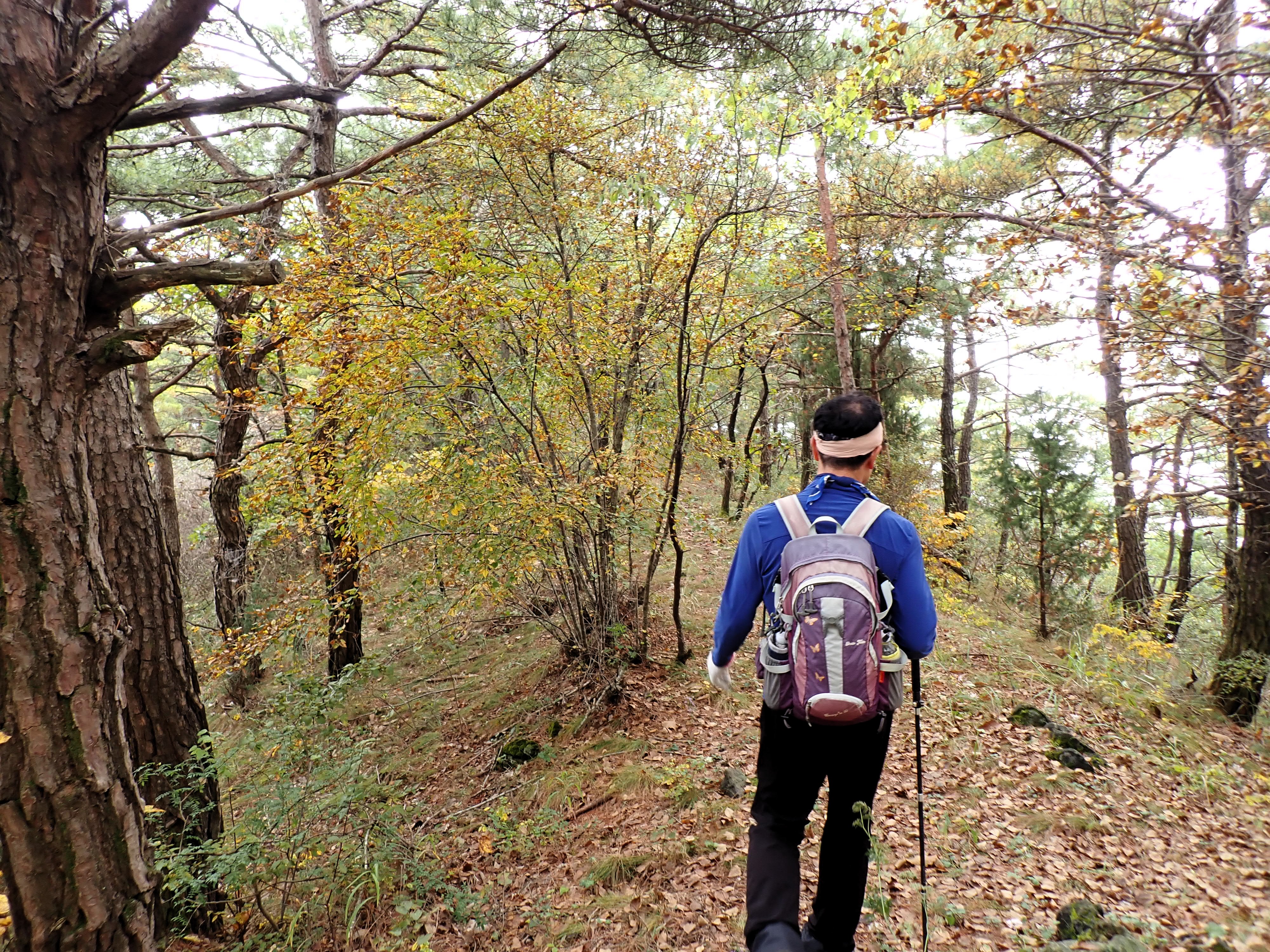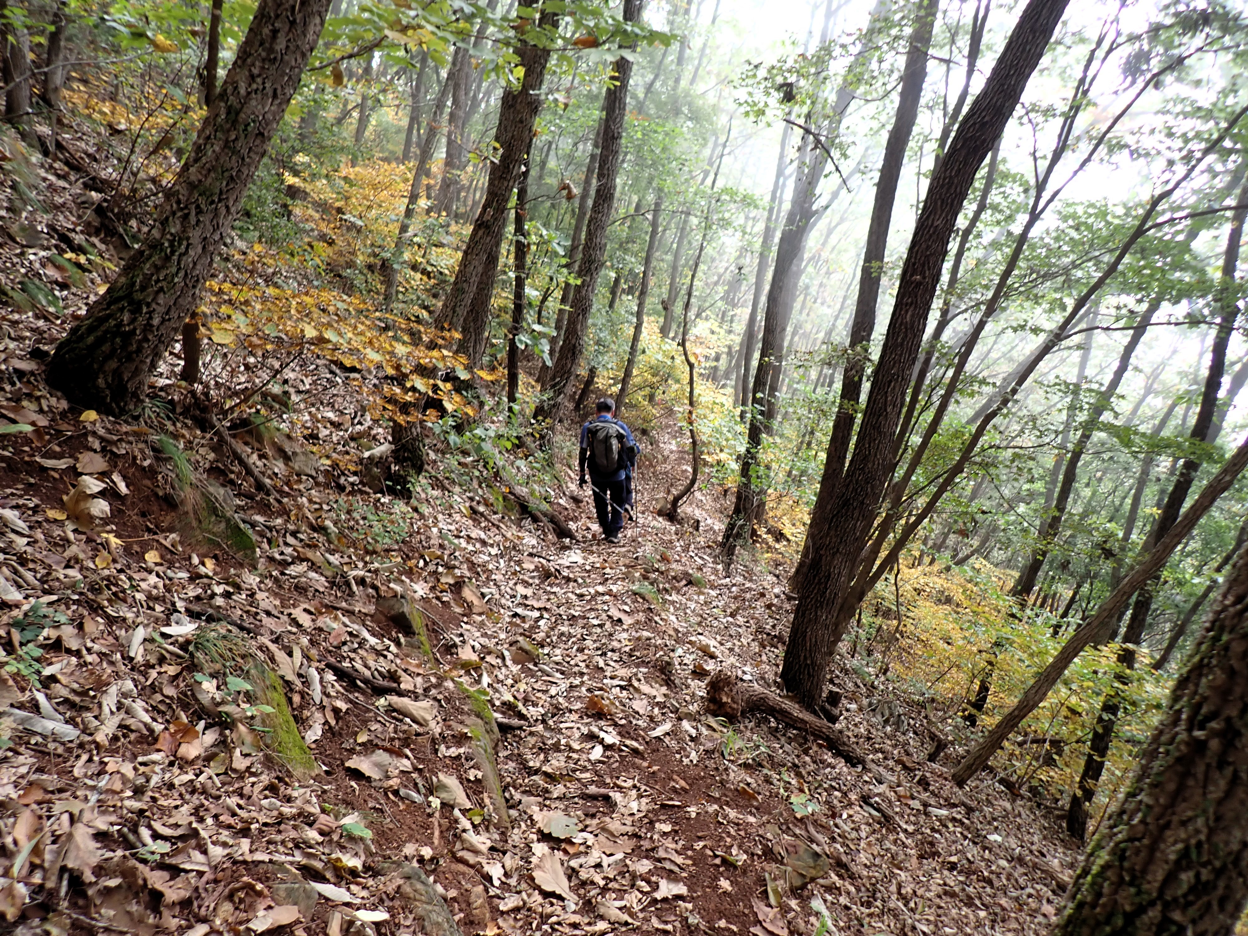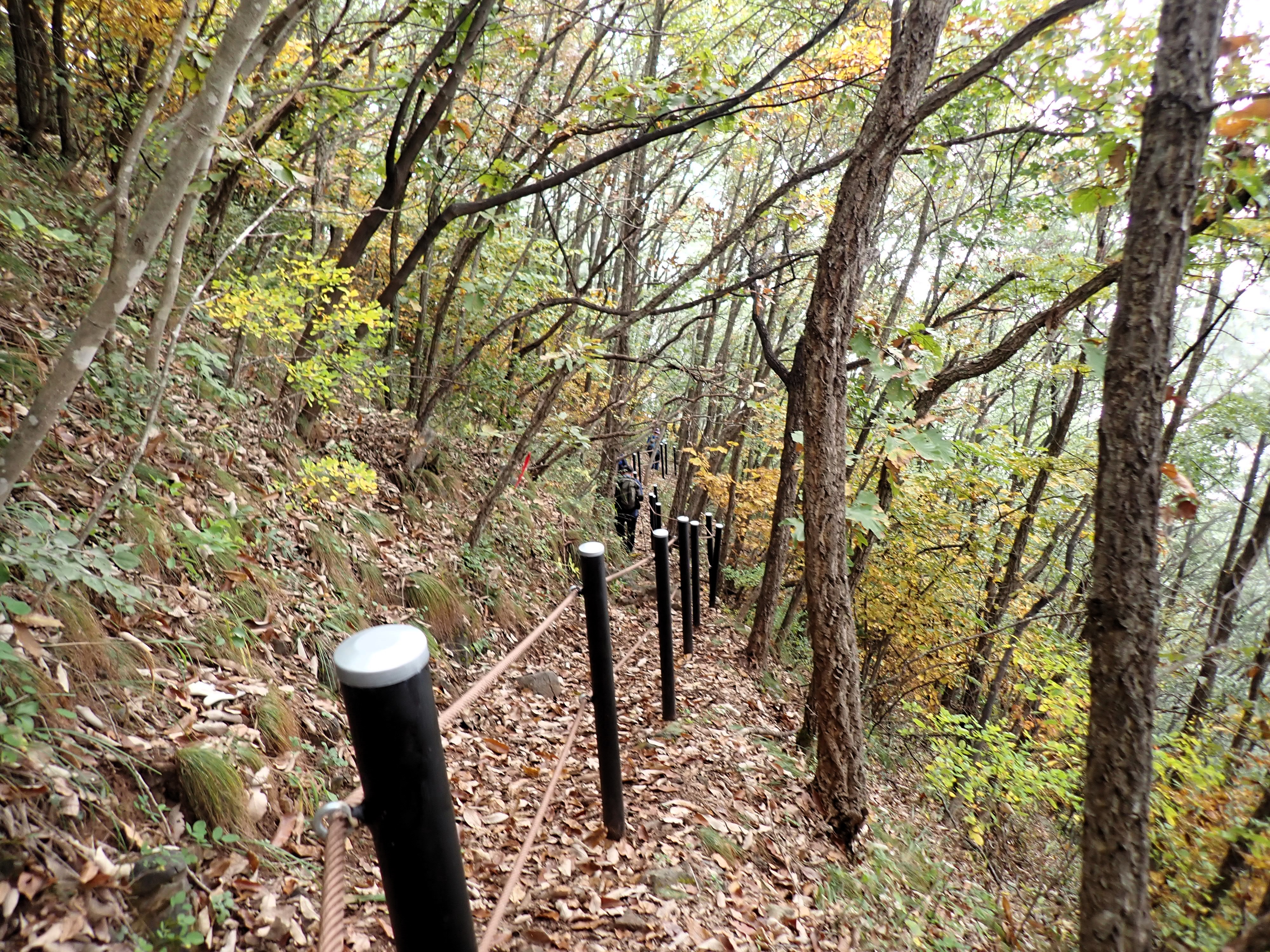 발아래 등로는 뚜렷하나 무릎 위로는 수풀이 우거져 가려버렸다