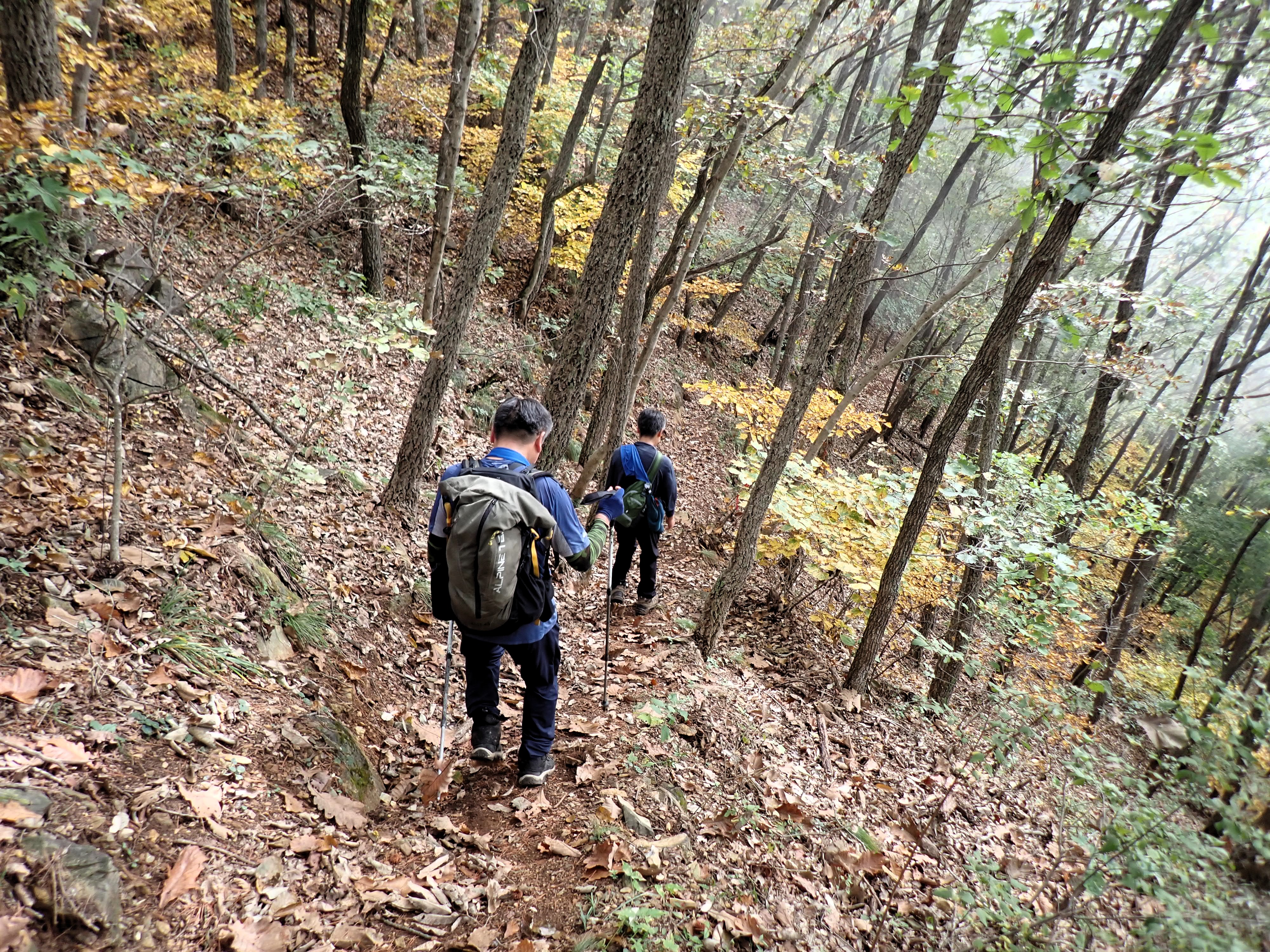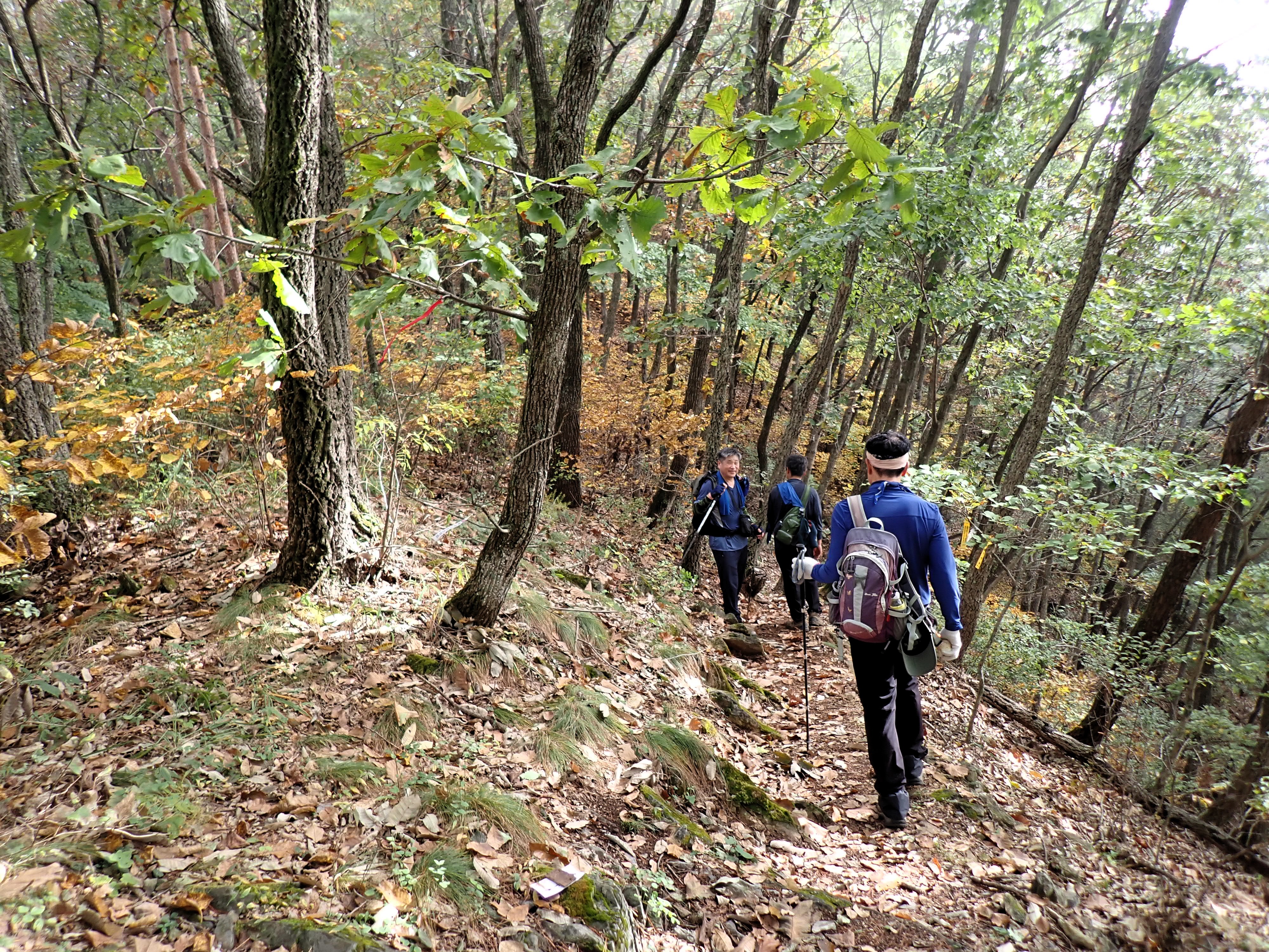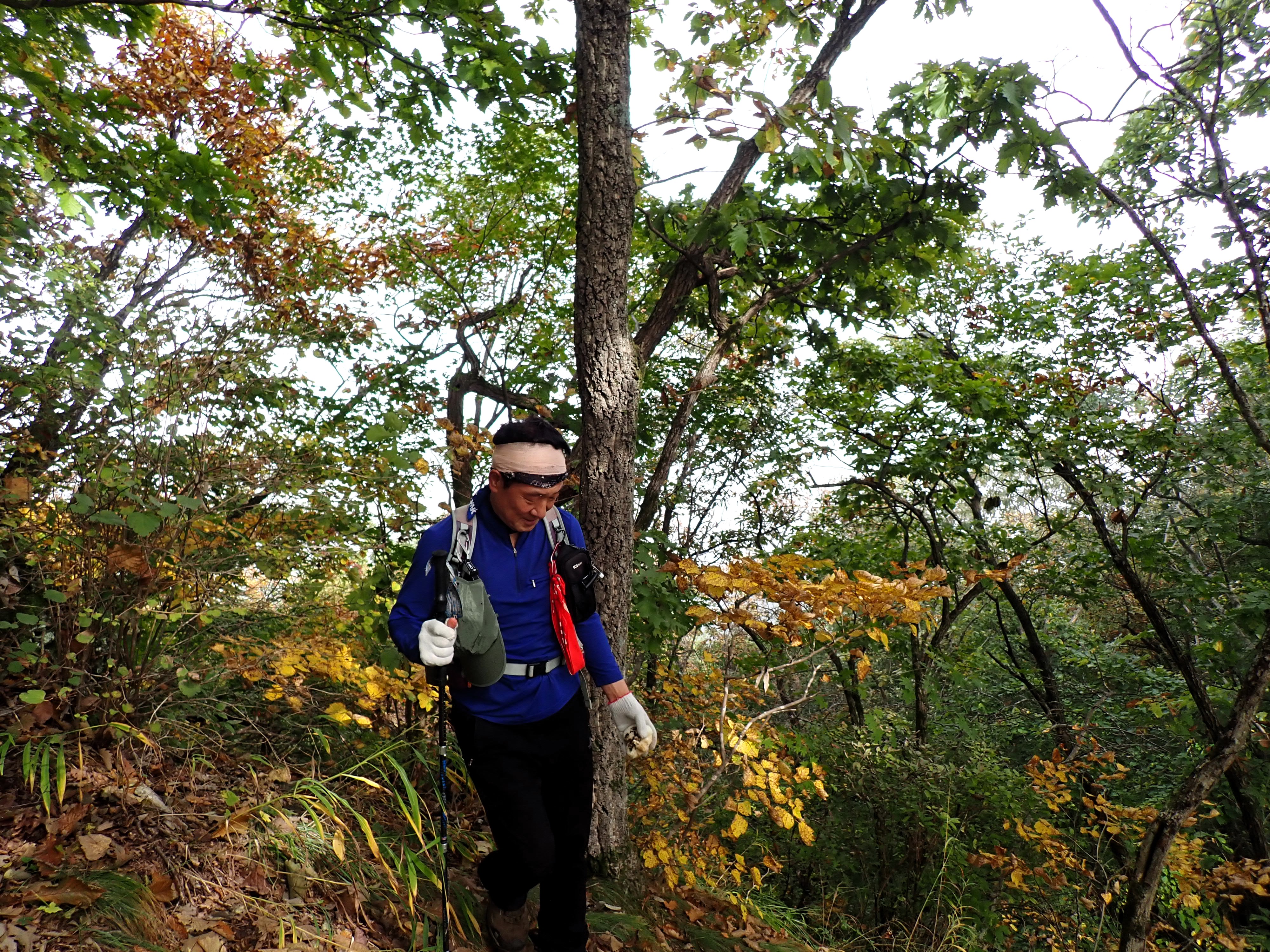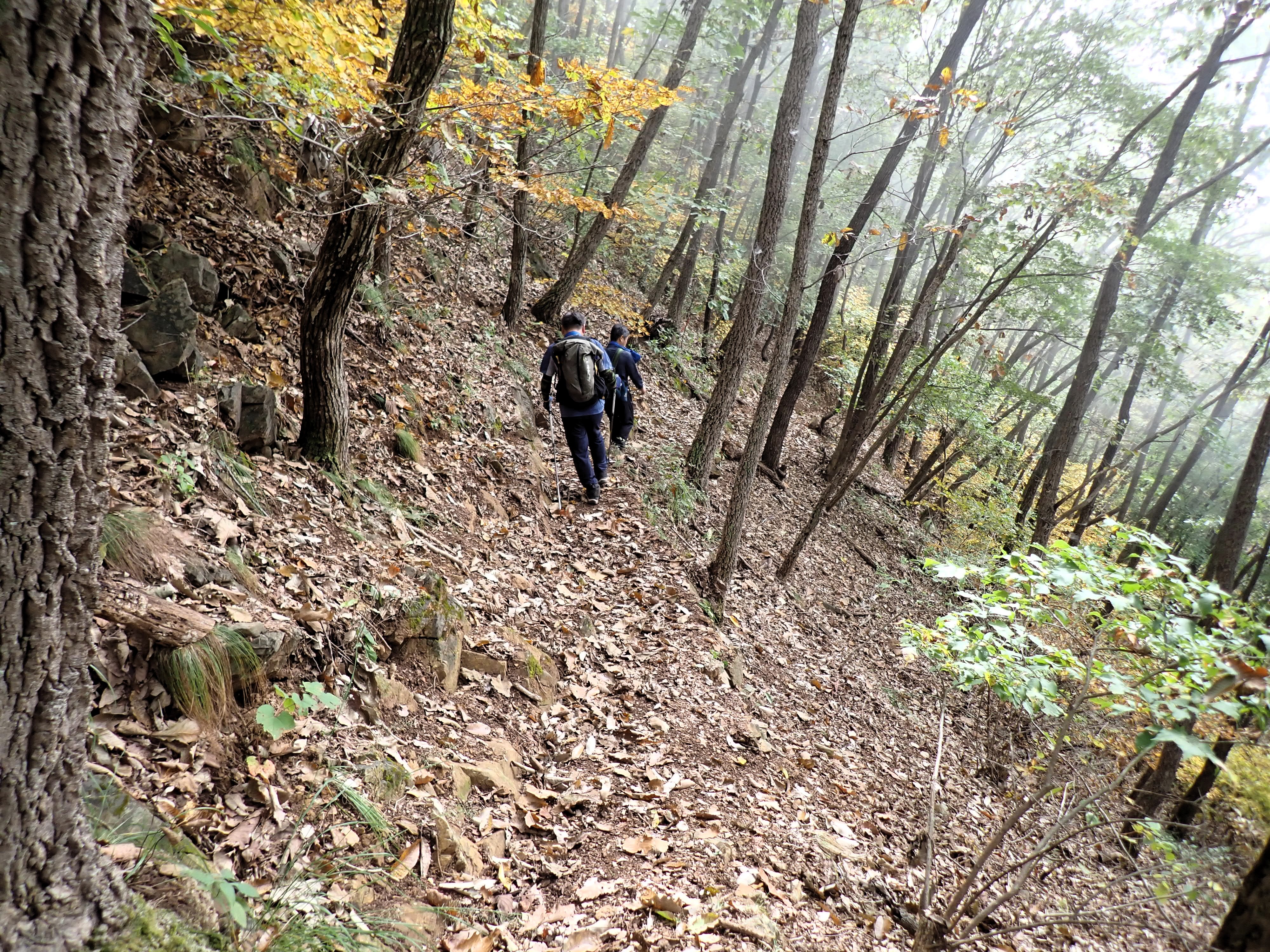 발아래 등로는 뚜렷하나 무릎 위로는 수풀이 우거져 가려버렸다