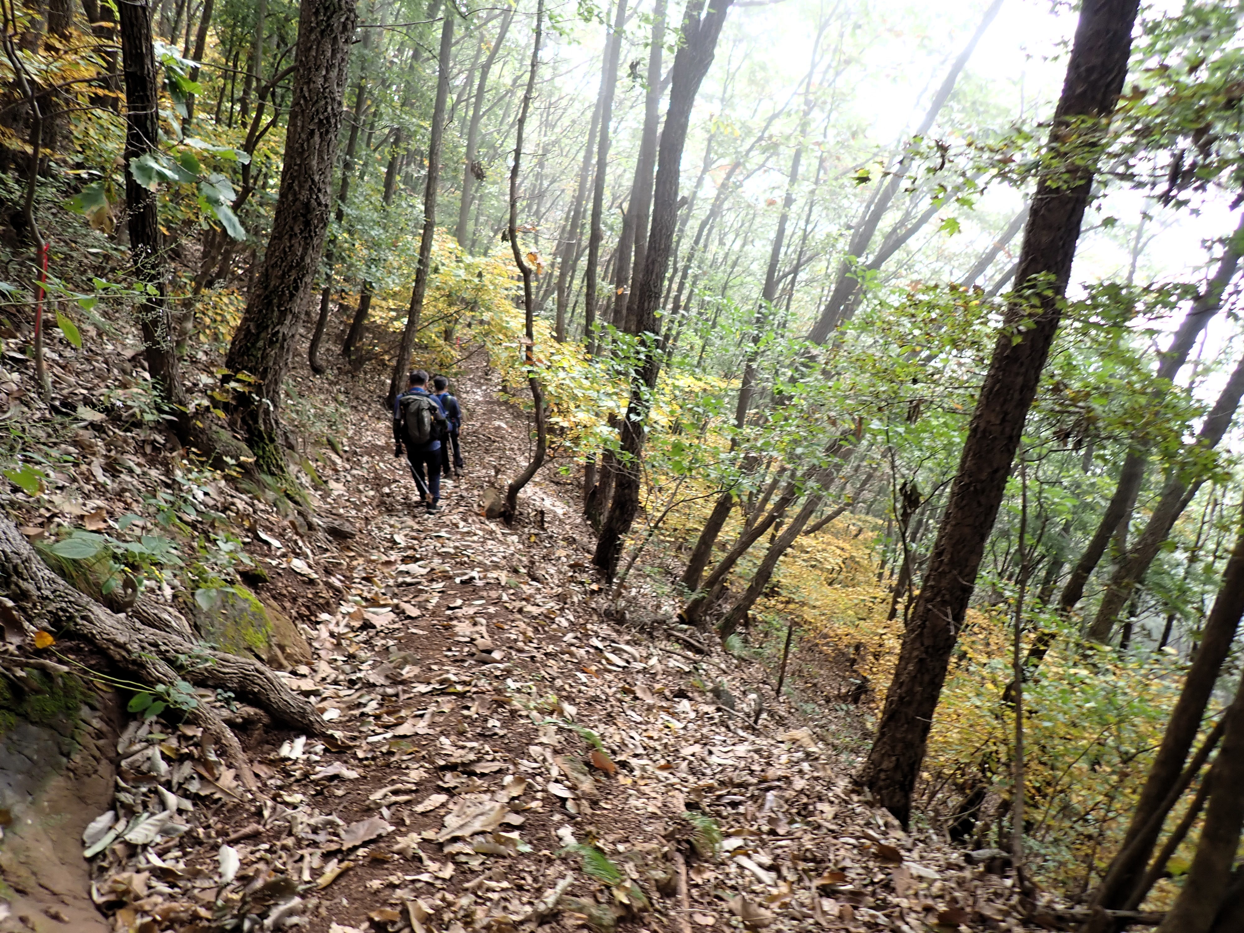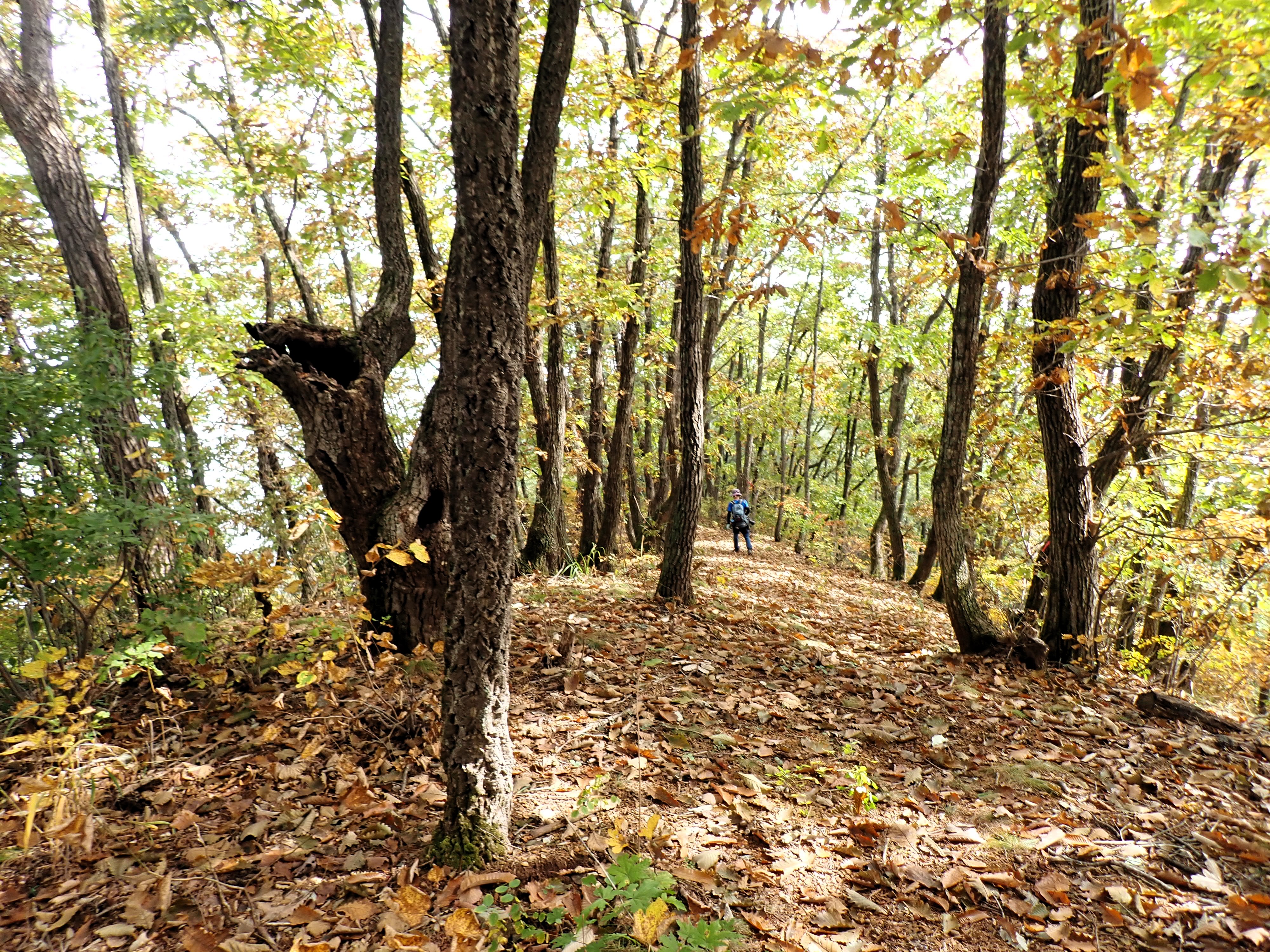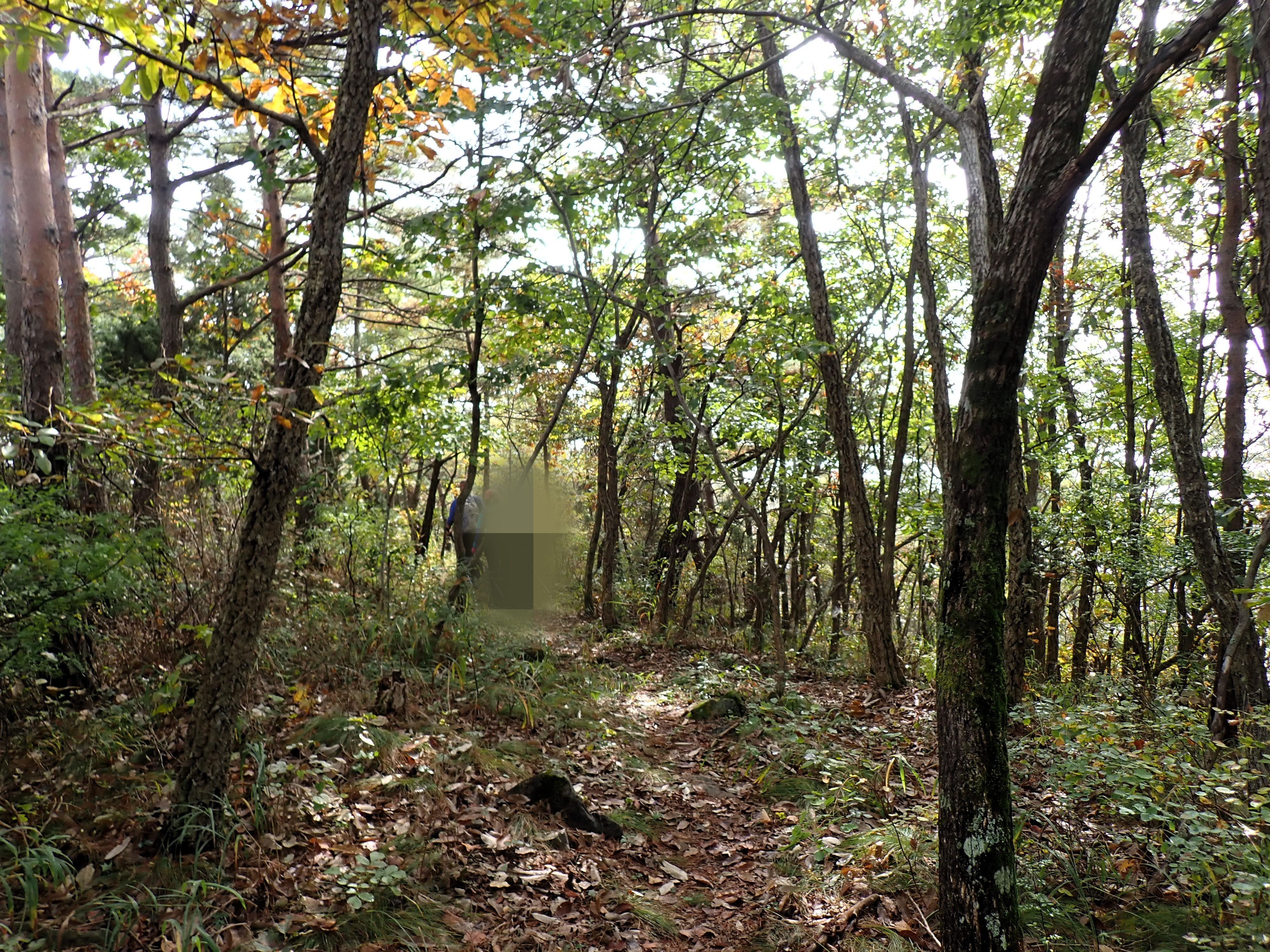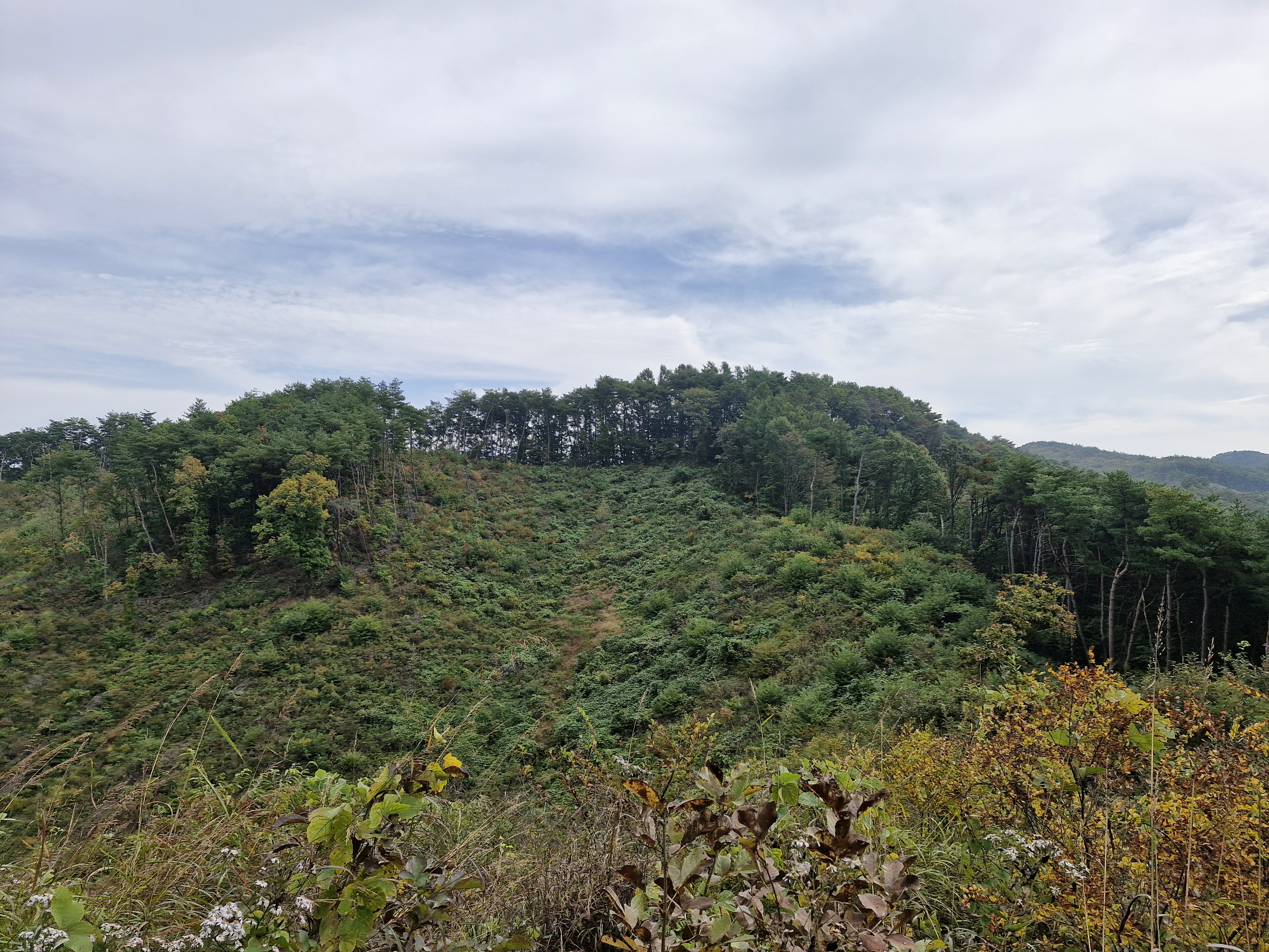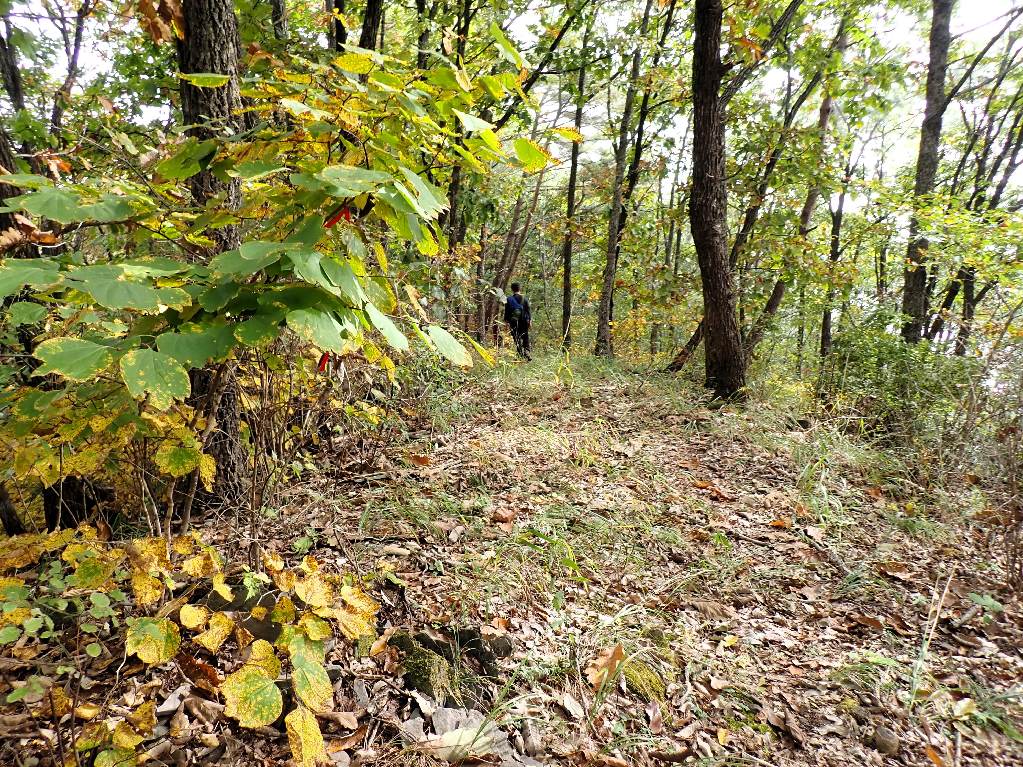 발아래 등로는 뚜렷하나 무릎 위로는 수풀이 우거져 가려버렸다