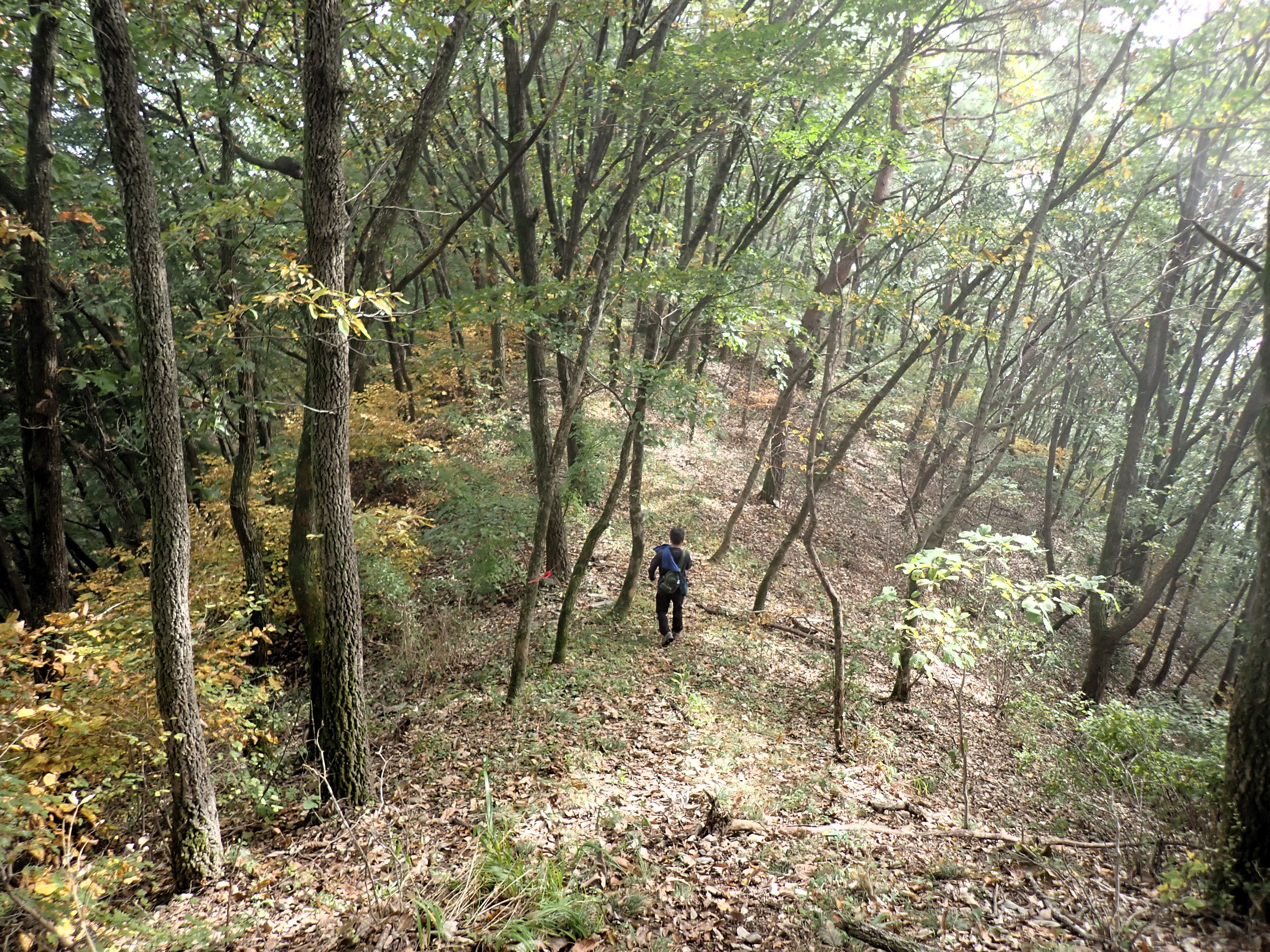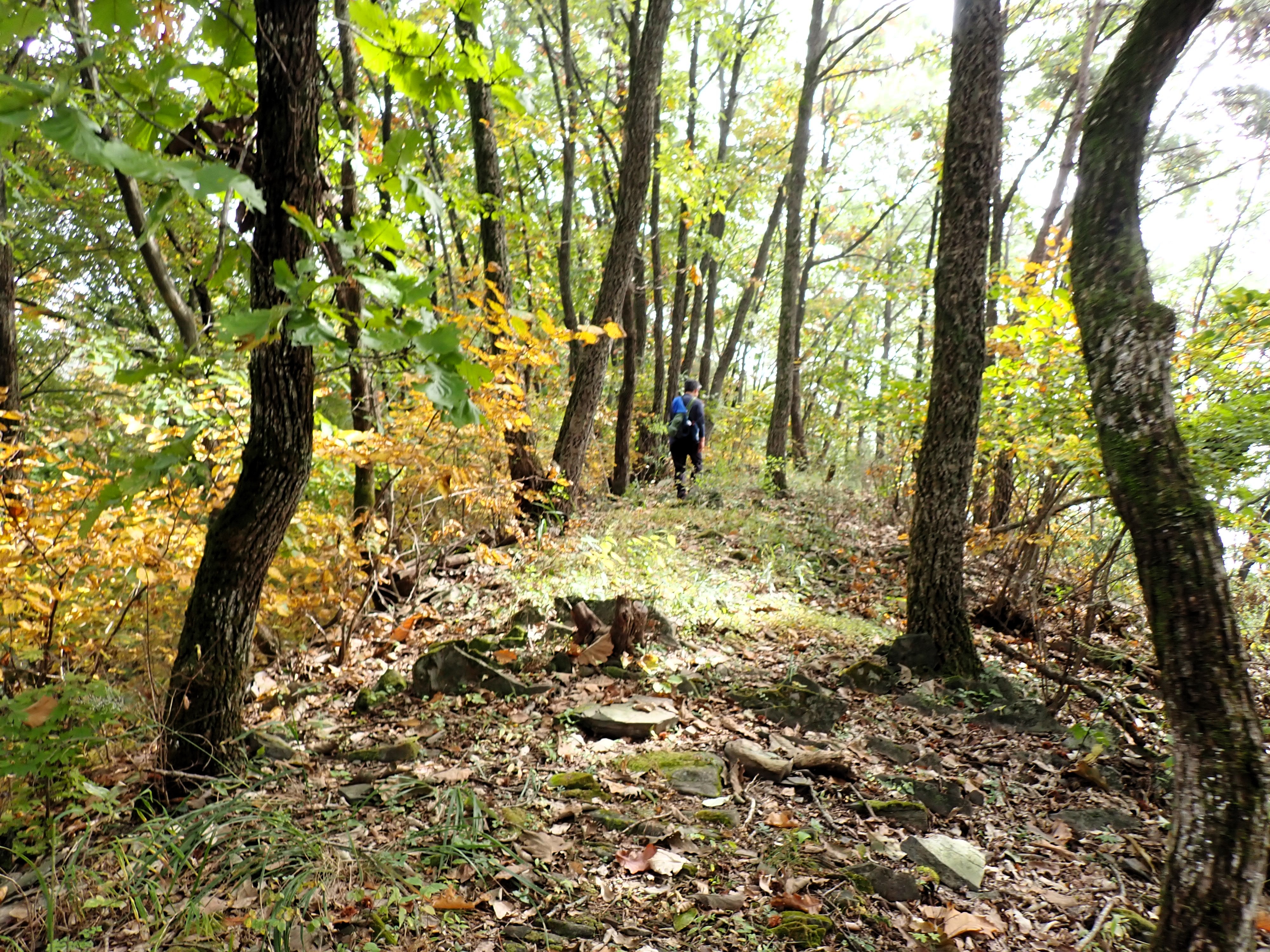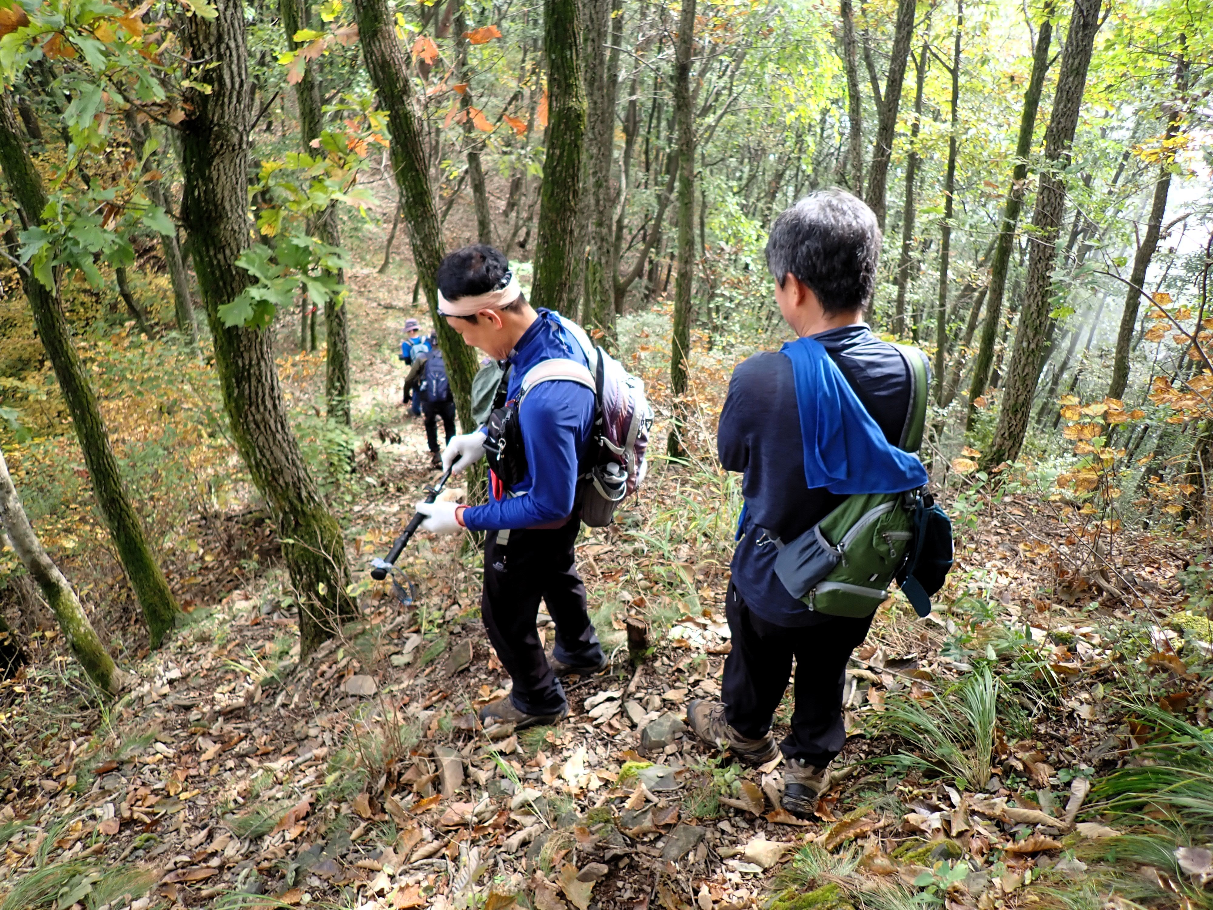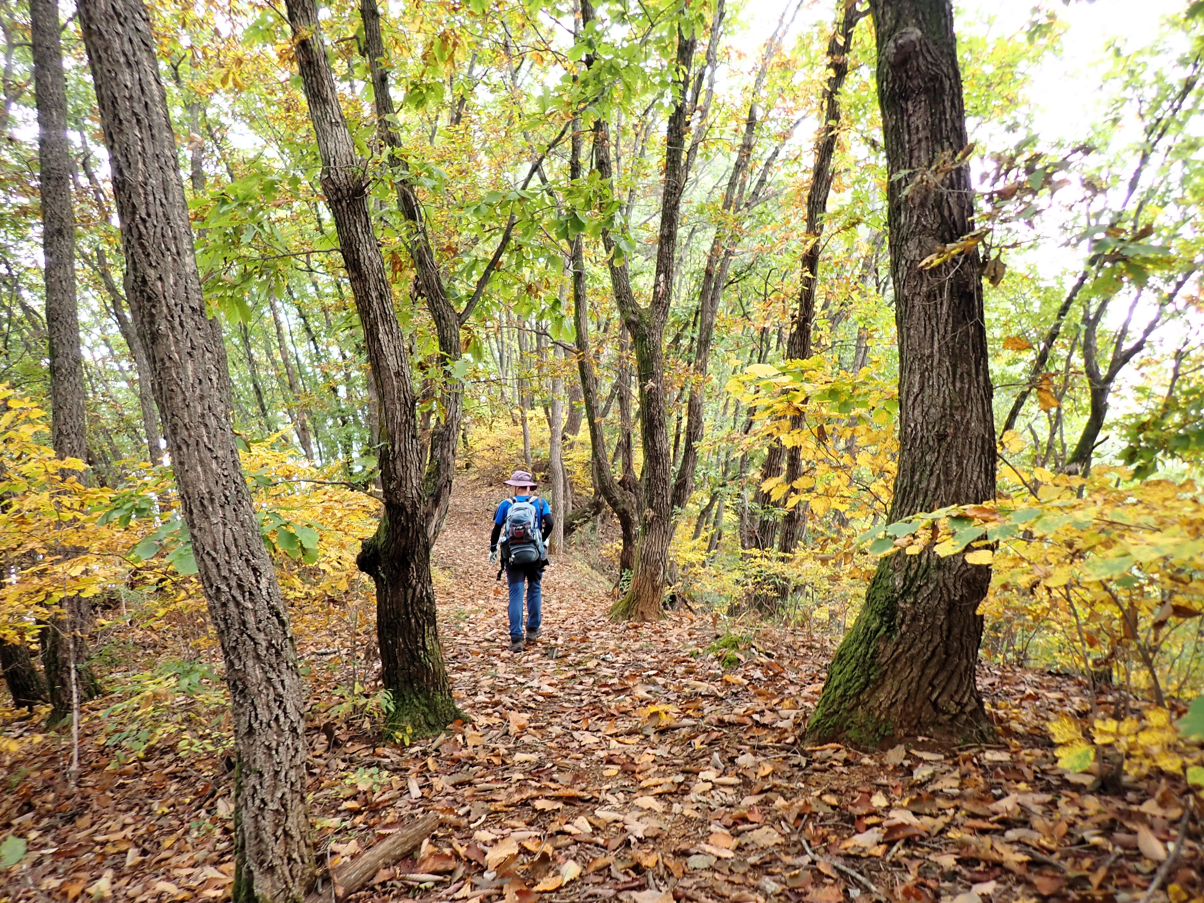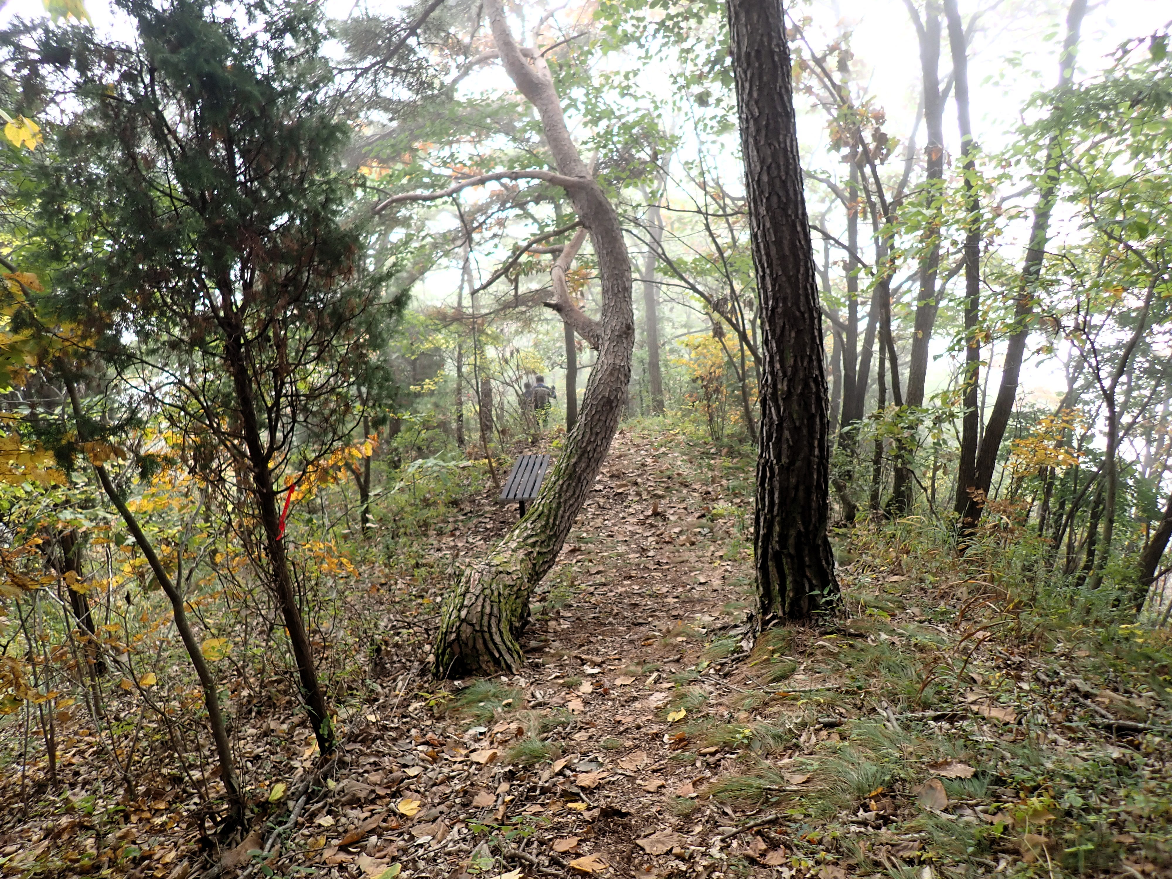 발아래 등로는 뚜렷하나 무릎 위로는 수풀이 우거져 가려버렸다