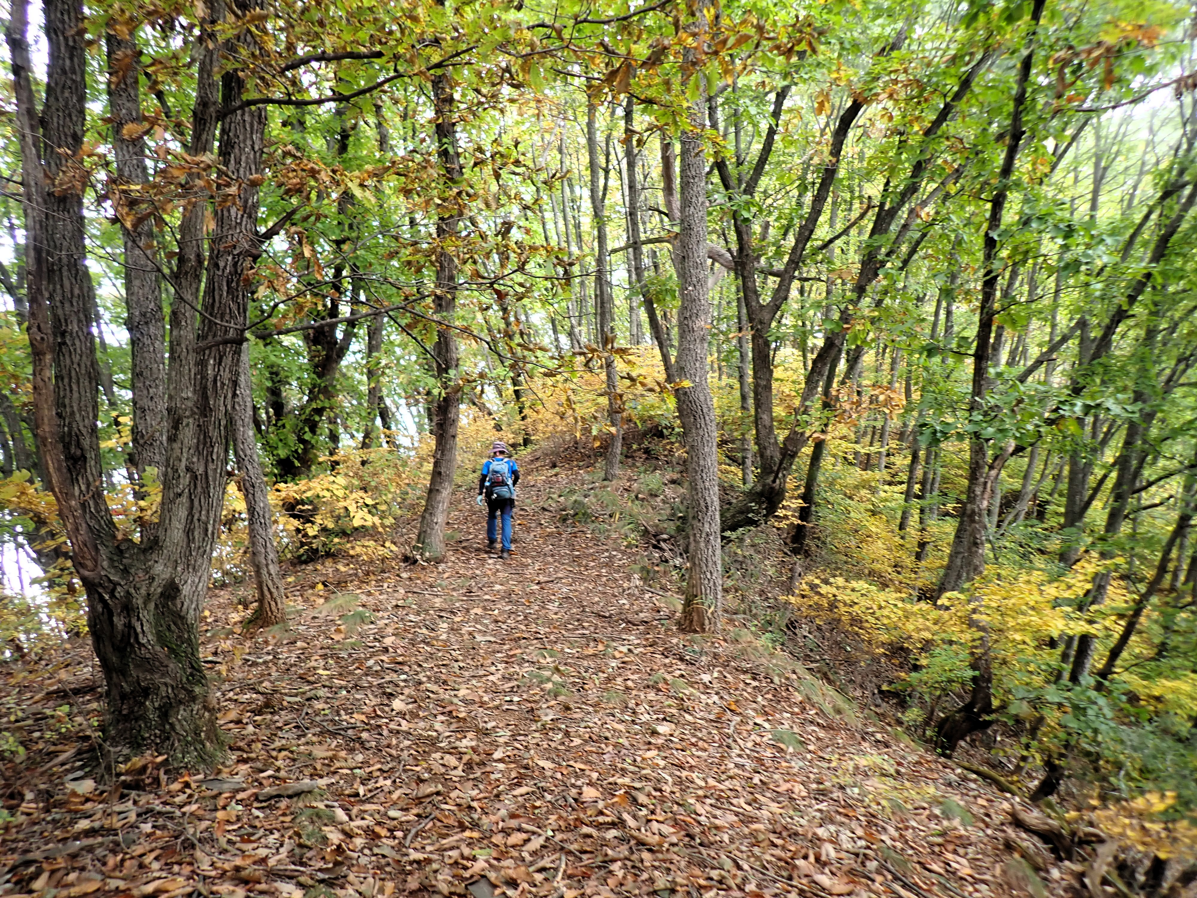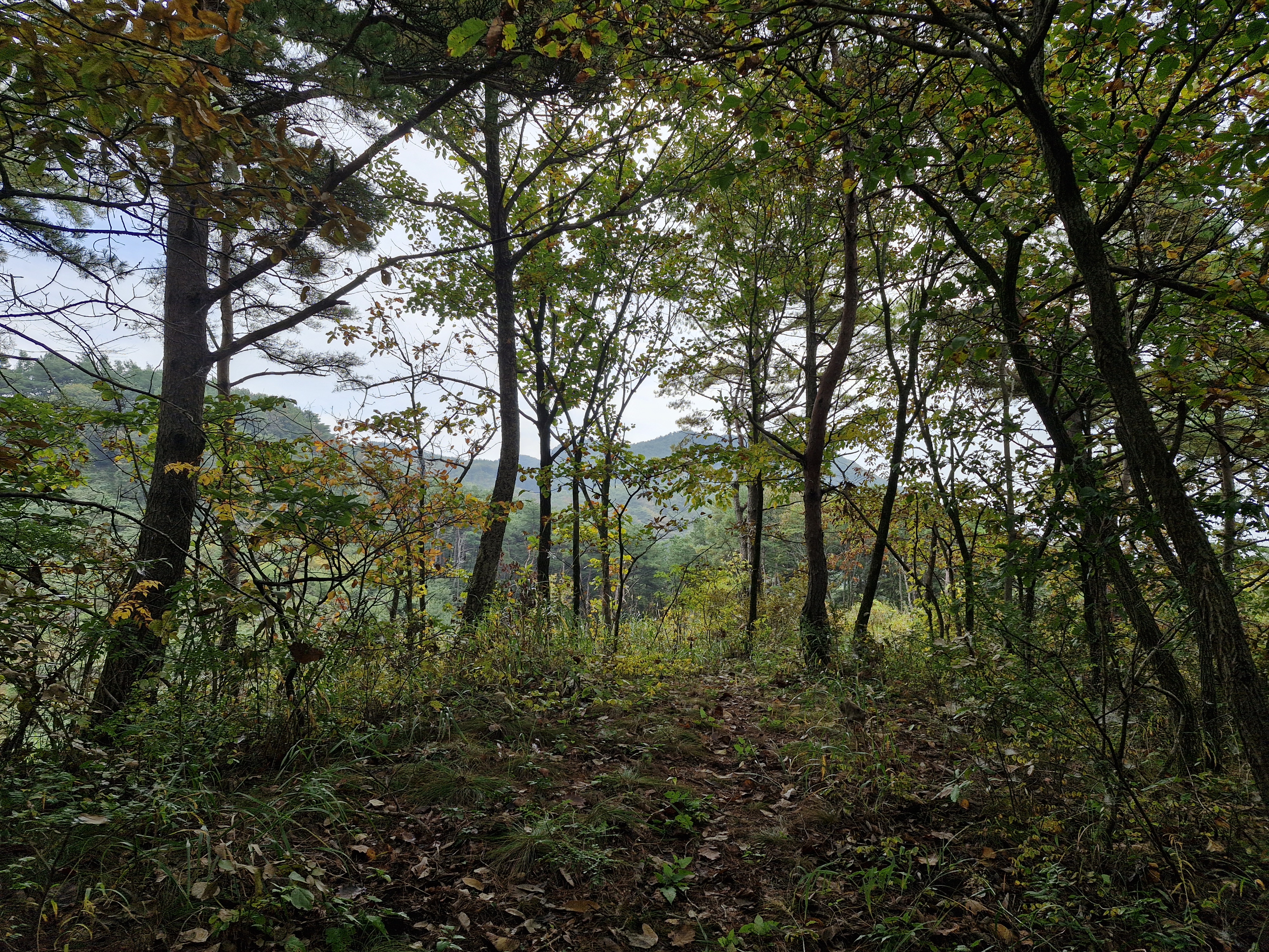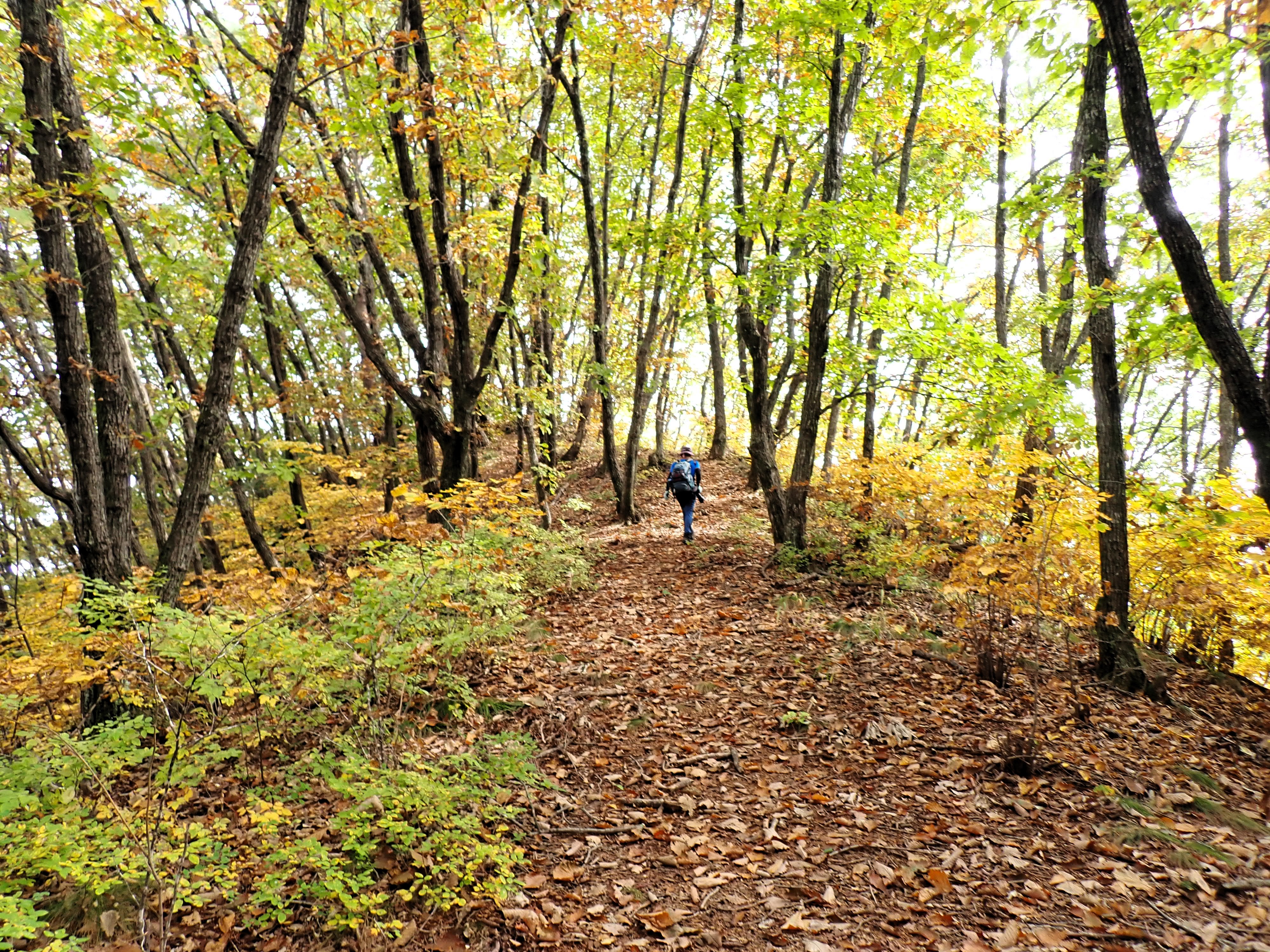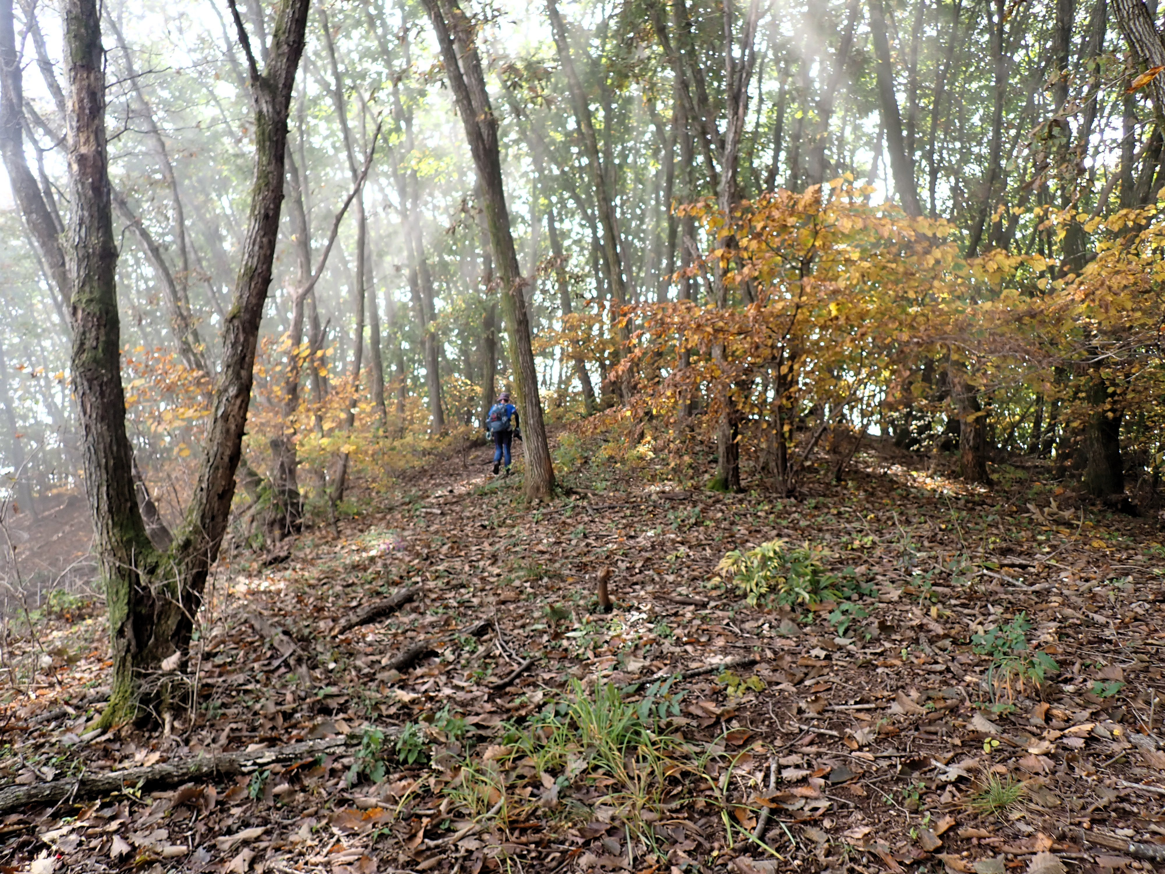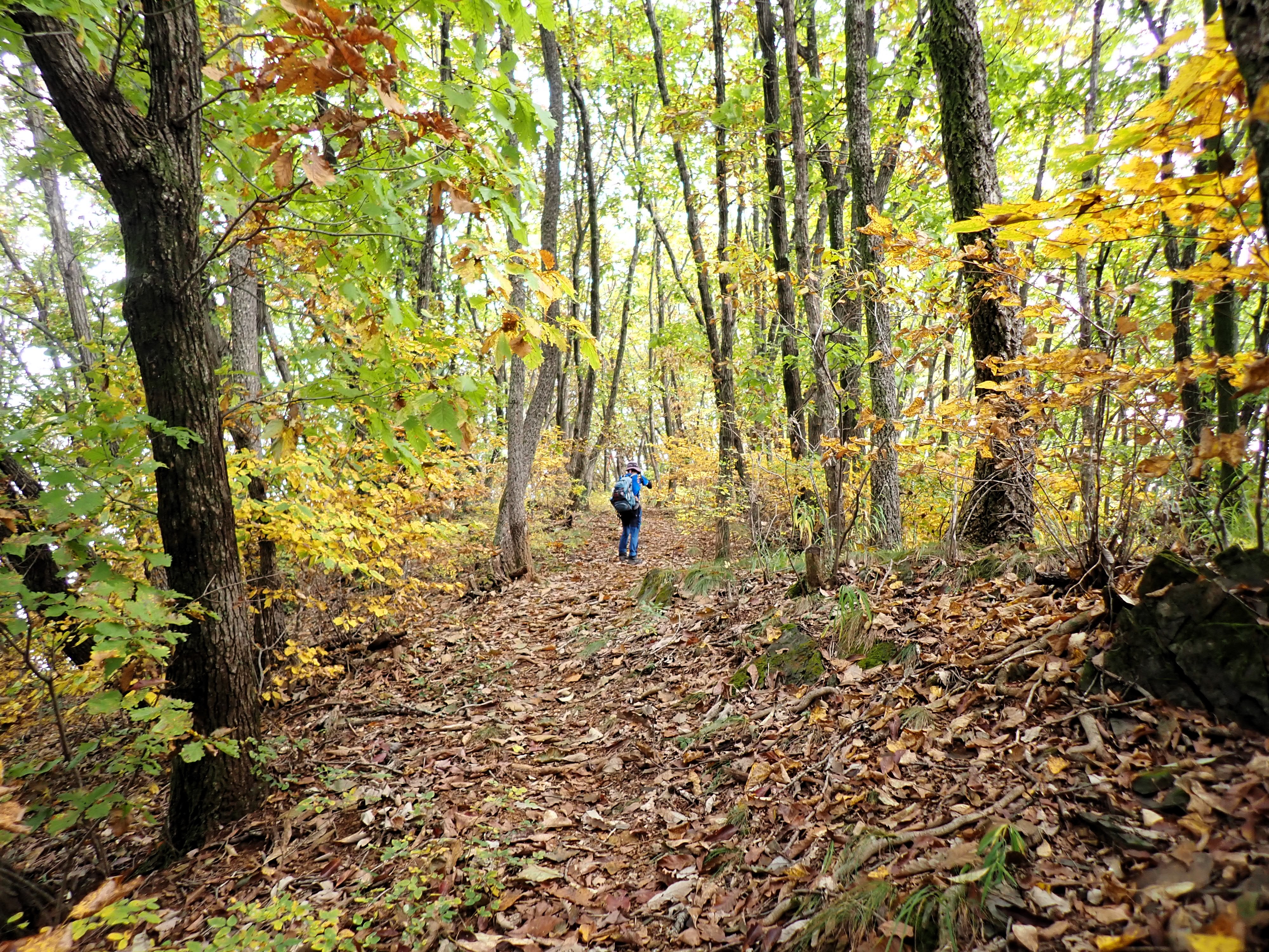 발아래 등로는 뚜렷하나 무릎 위로는 수풀이 우거져 가려버렸다