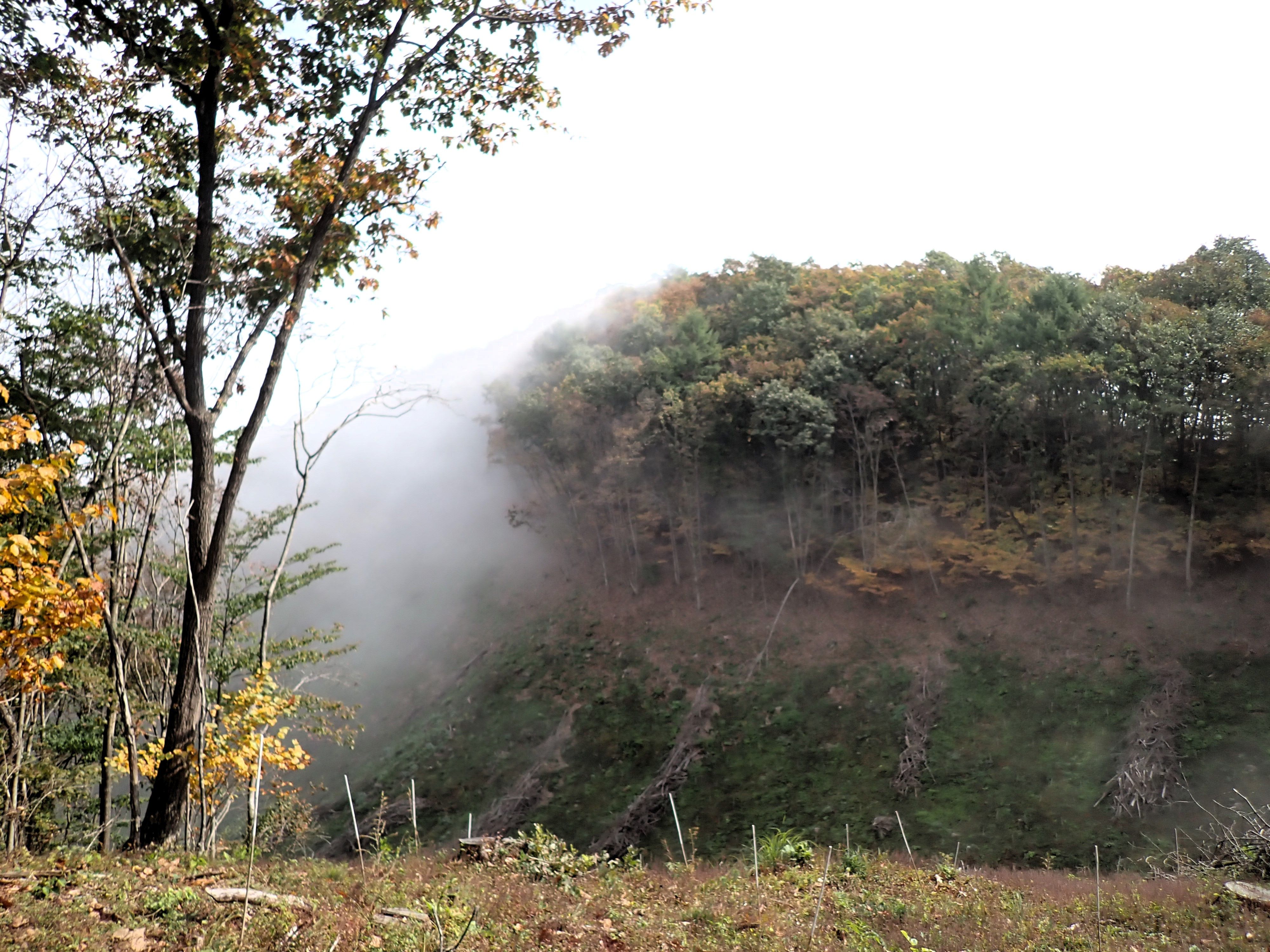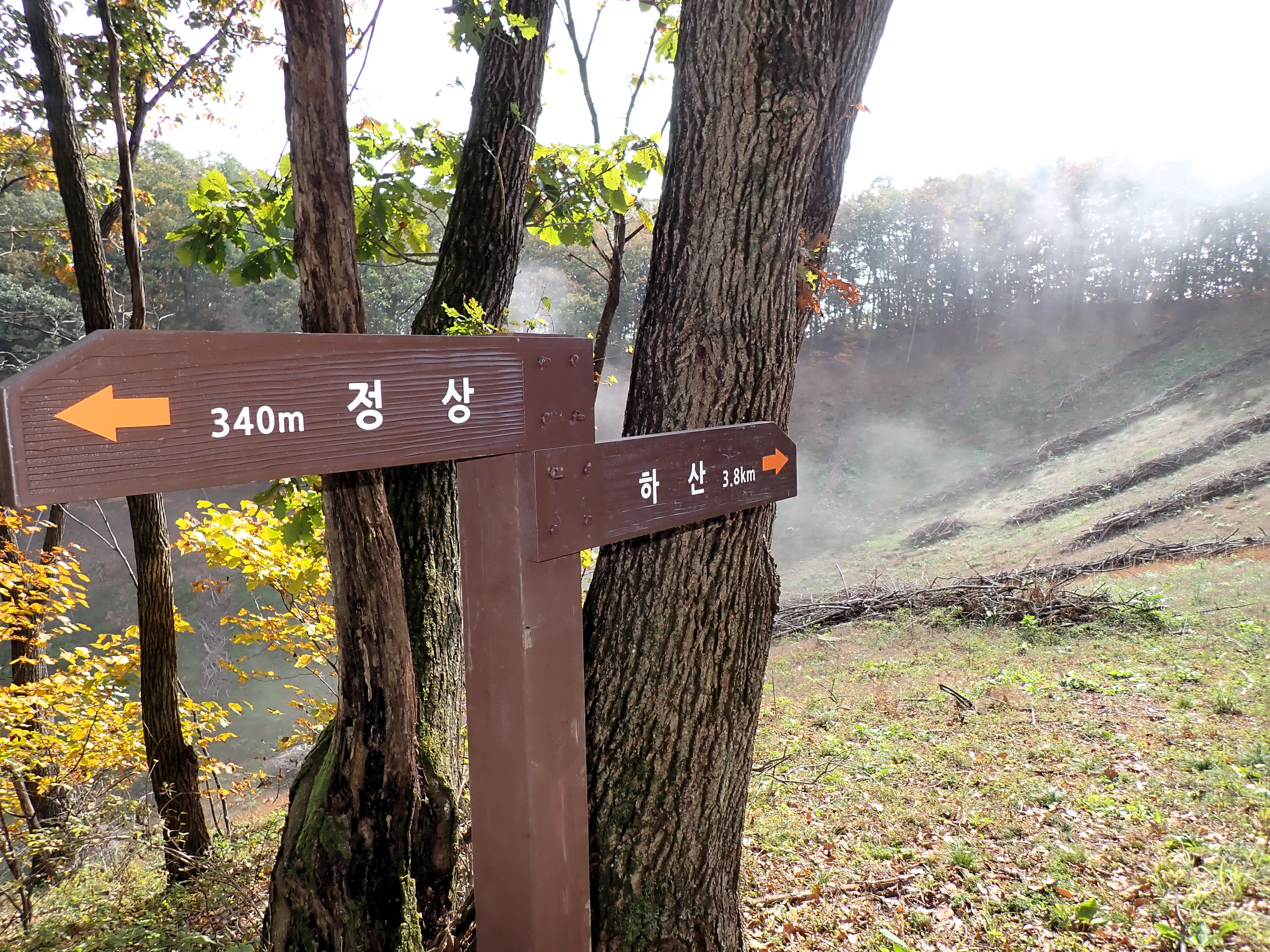 햇살에 안개(구름)가 걷히고 있다