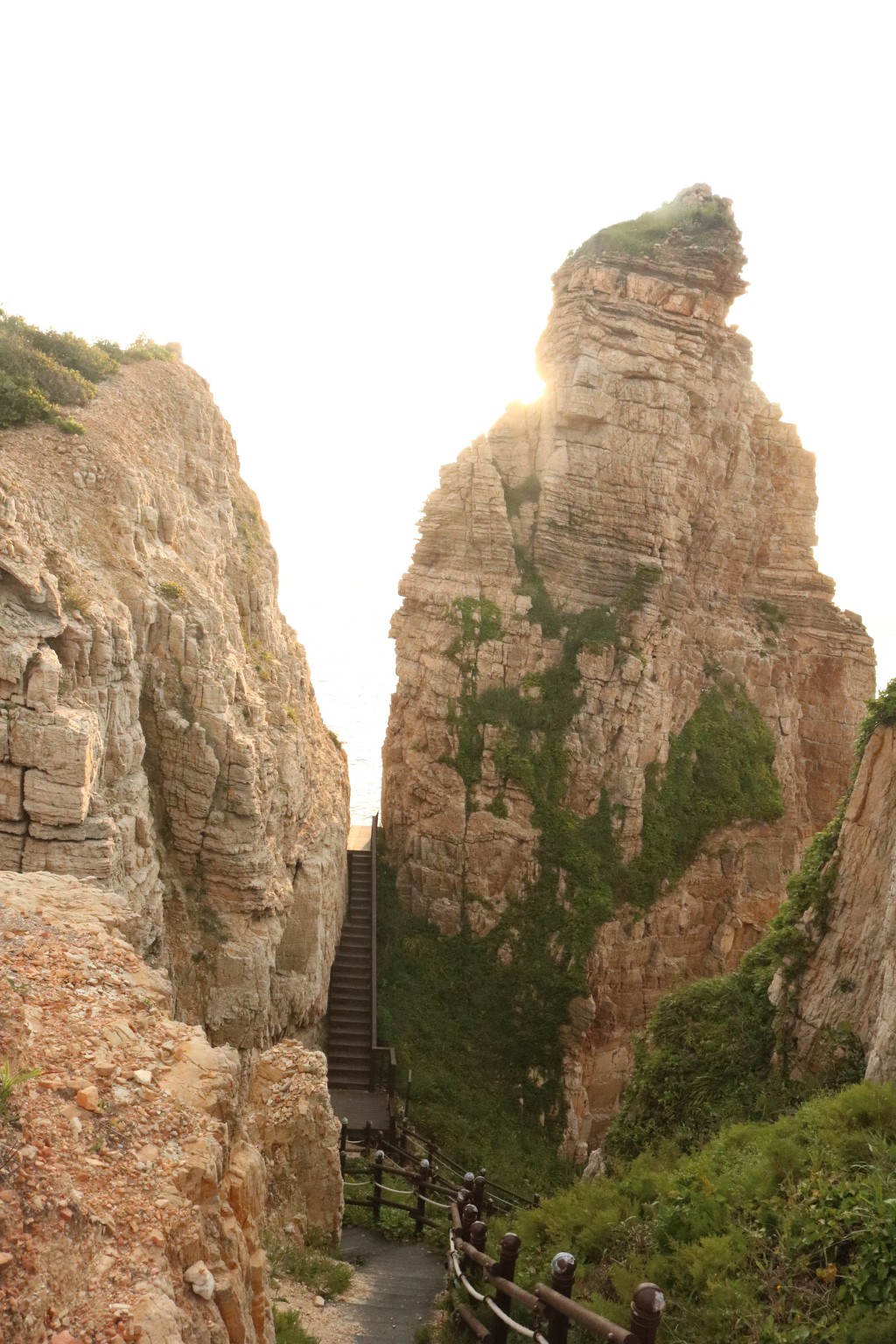 ▼ 탐방로는 정비가 잘 되어 있다. 바닷가나 바윗길에는 데크를 깔았는가 하면 산속에 내놓은 오솔길도 걷기에 부담이 없게끔 잘 닦아 놓았다. 잠시 쉬어가라는 배려용으로 정자까지 만들어 놓았음은 물론이다. 하긴 올 7월 환경부로부터 국가지질공원으로 인증까지 받았을 정도이니 이를 말이겠는가. 참고로 두무진의 원래 이름은 '두모진(頭毛鎭)'이었다고 한다. 머리카락처럼 뾰족한 바위가 많다는 데서 유래된 이름이다. 이후 바위의 형상이 마치 장군들이 머리를 맞대고 회의하는 것 같다 하여 '두무진(頭武津)'으로 바뀌었단다.